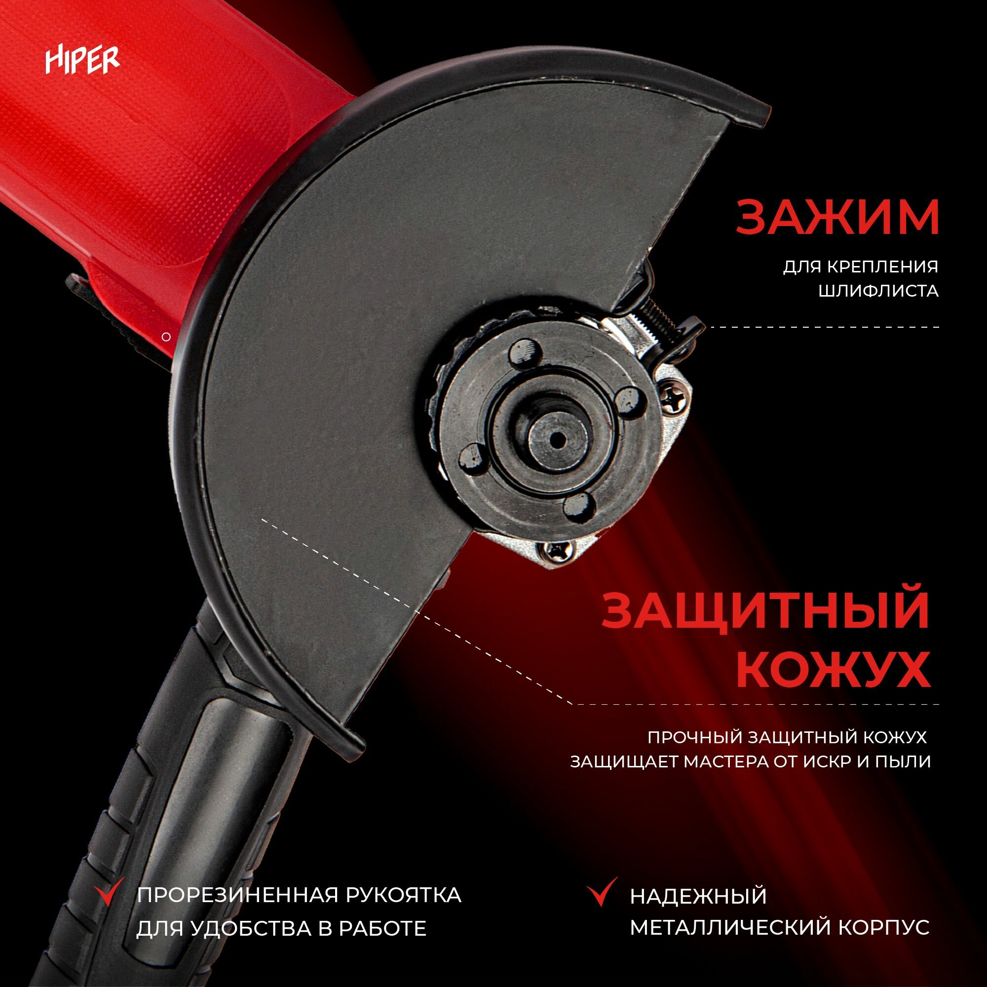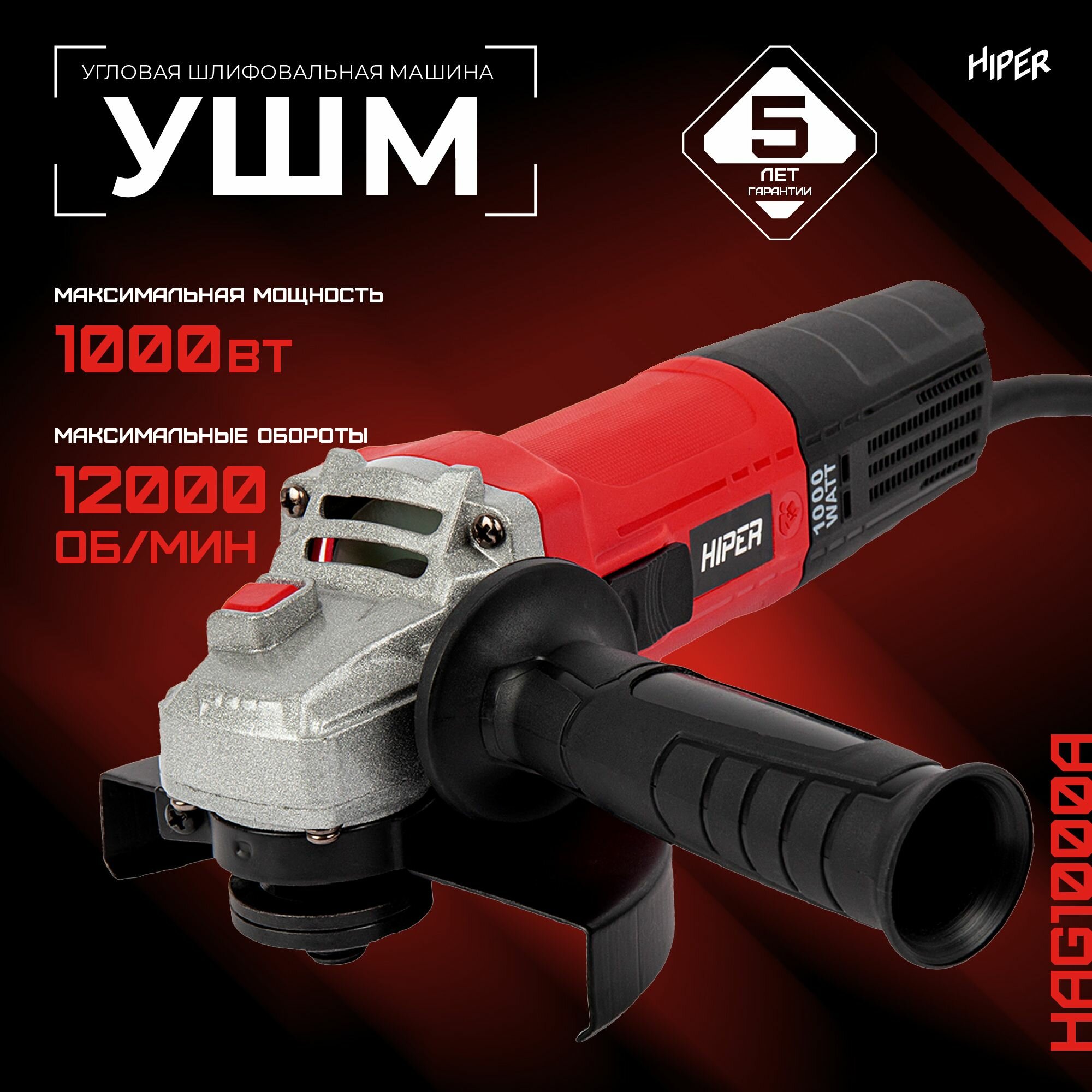 Угловая шлифовальная машина (болгарка) Hiper HAG1000B красно-черный интересное: