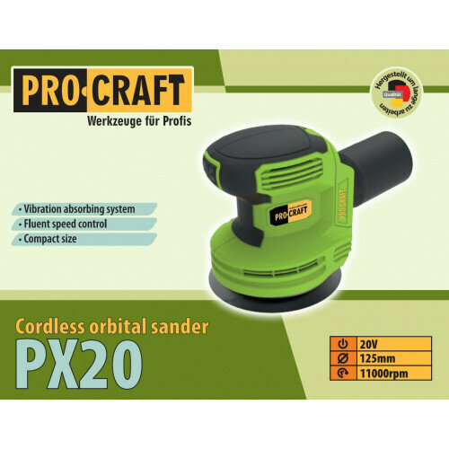 Эксцентриковая аккумуляторная шлифмашинка ProCraft PX-20 (без АКБ и ЗУ) 125мм диск, 11000об/мин интересное: