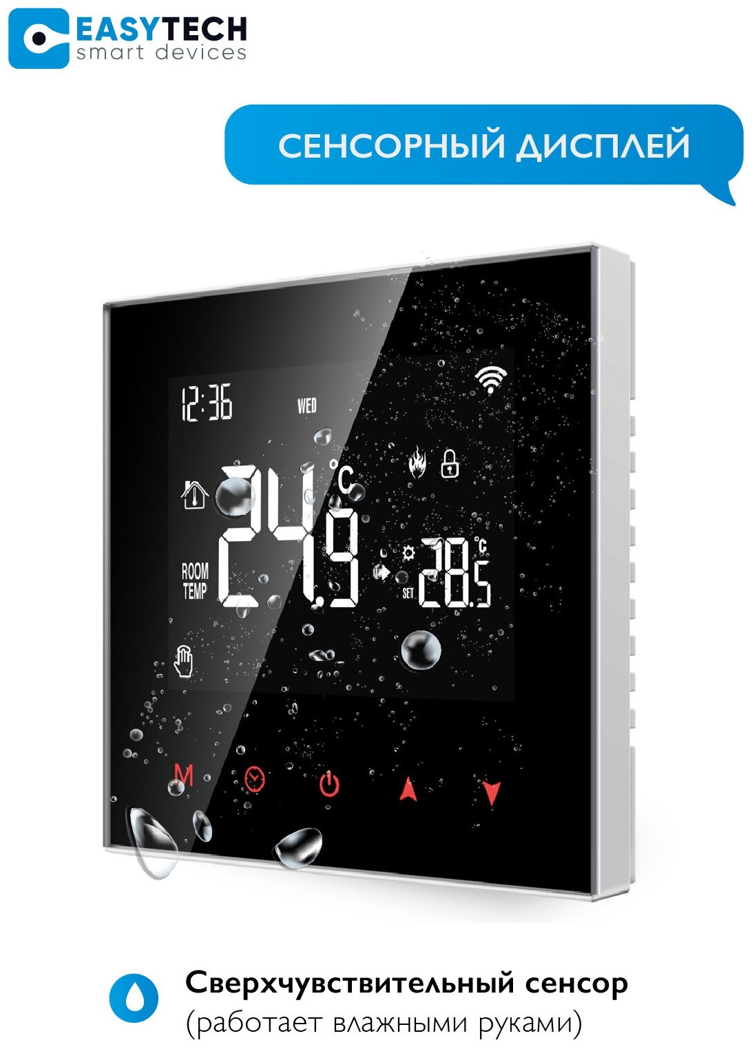 Умный терморегулятор 16А Easy Tech для теплых полов из закаленного стекла, сенсорный, черный интересное: