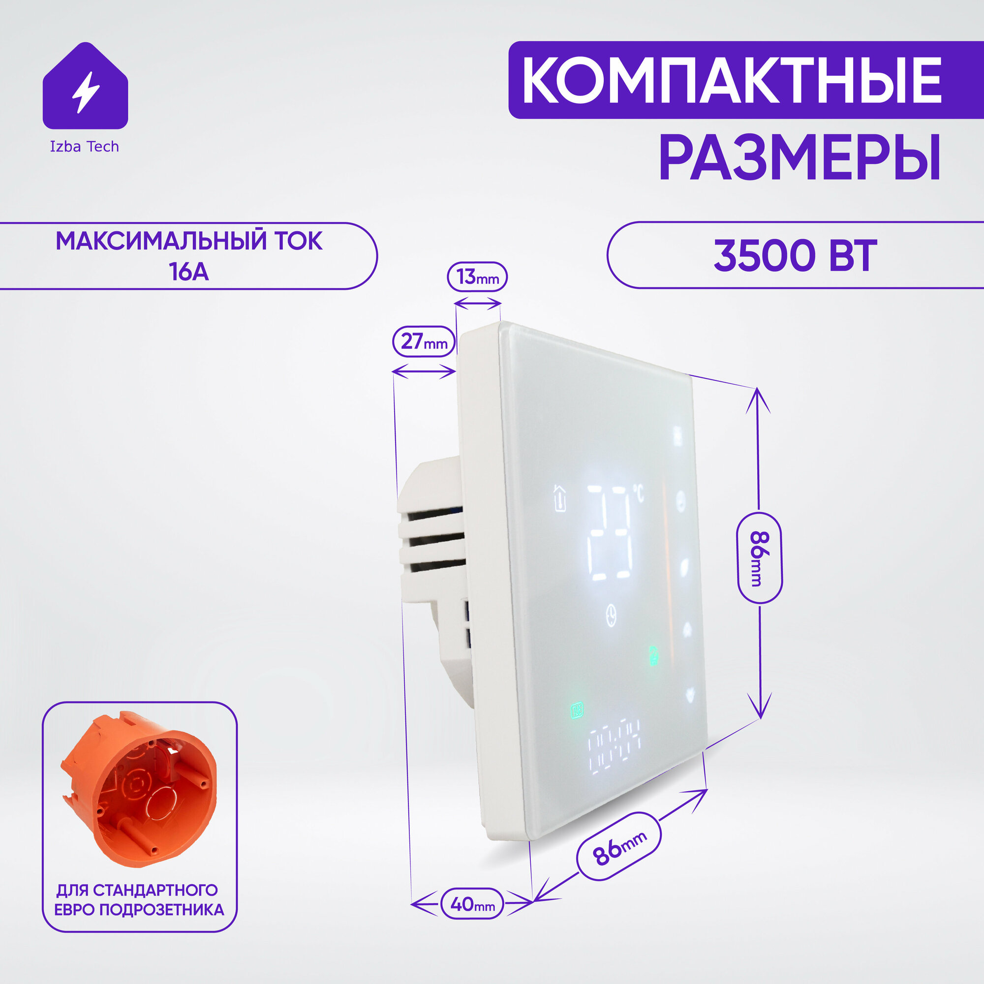 Умный сенсорный терморегулятор для тёплых полов WIFI с Алисой для умного дома белый термостат на 16А с ЖК экраном