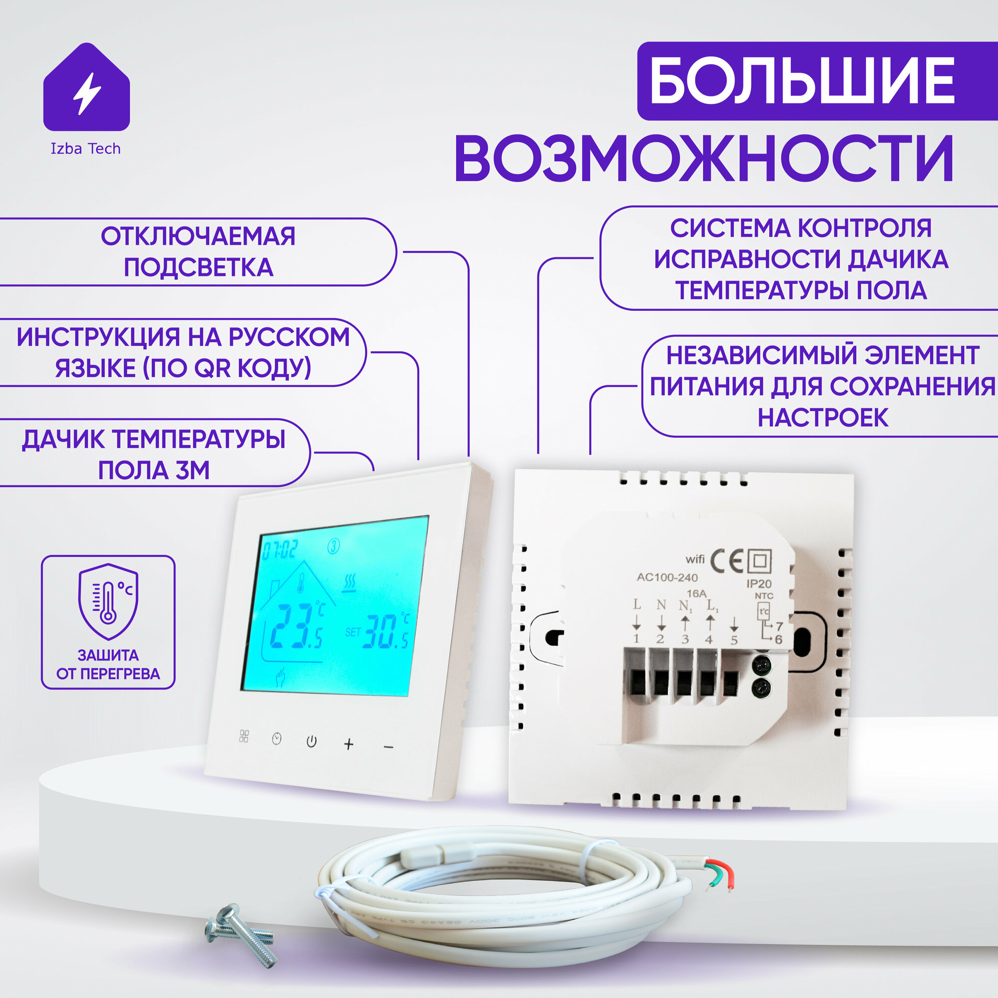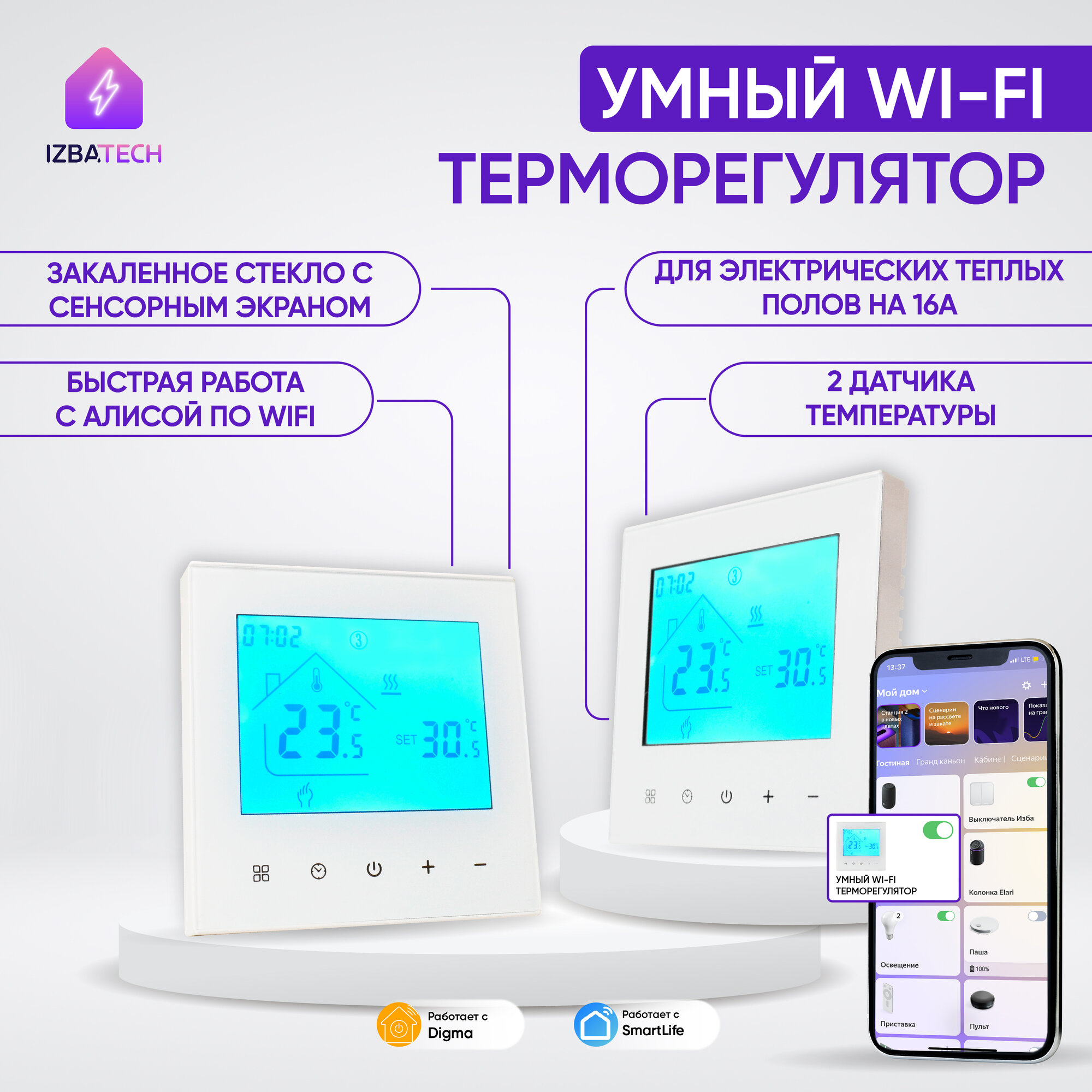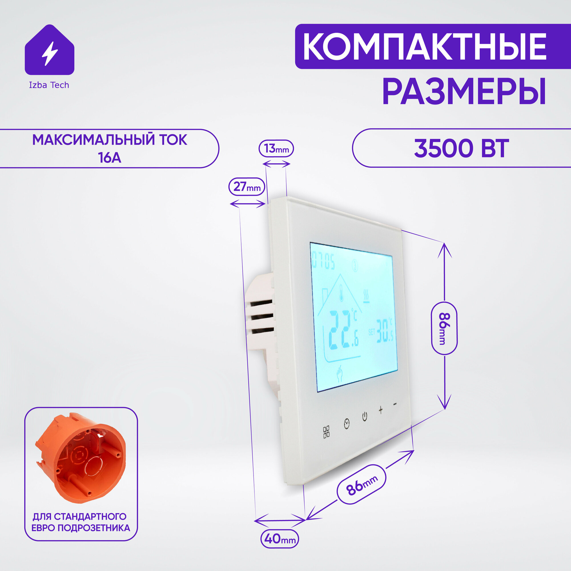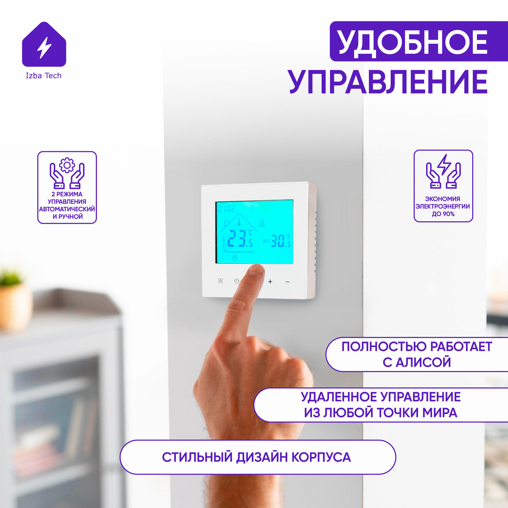 Умный терморегулятор для тёплых полов белого цвета для Алисы на 16А WIFI сенсорный термостат с ЖК экраном интересное: