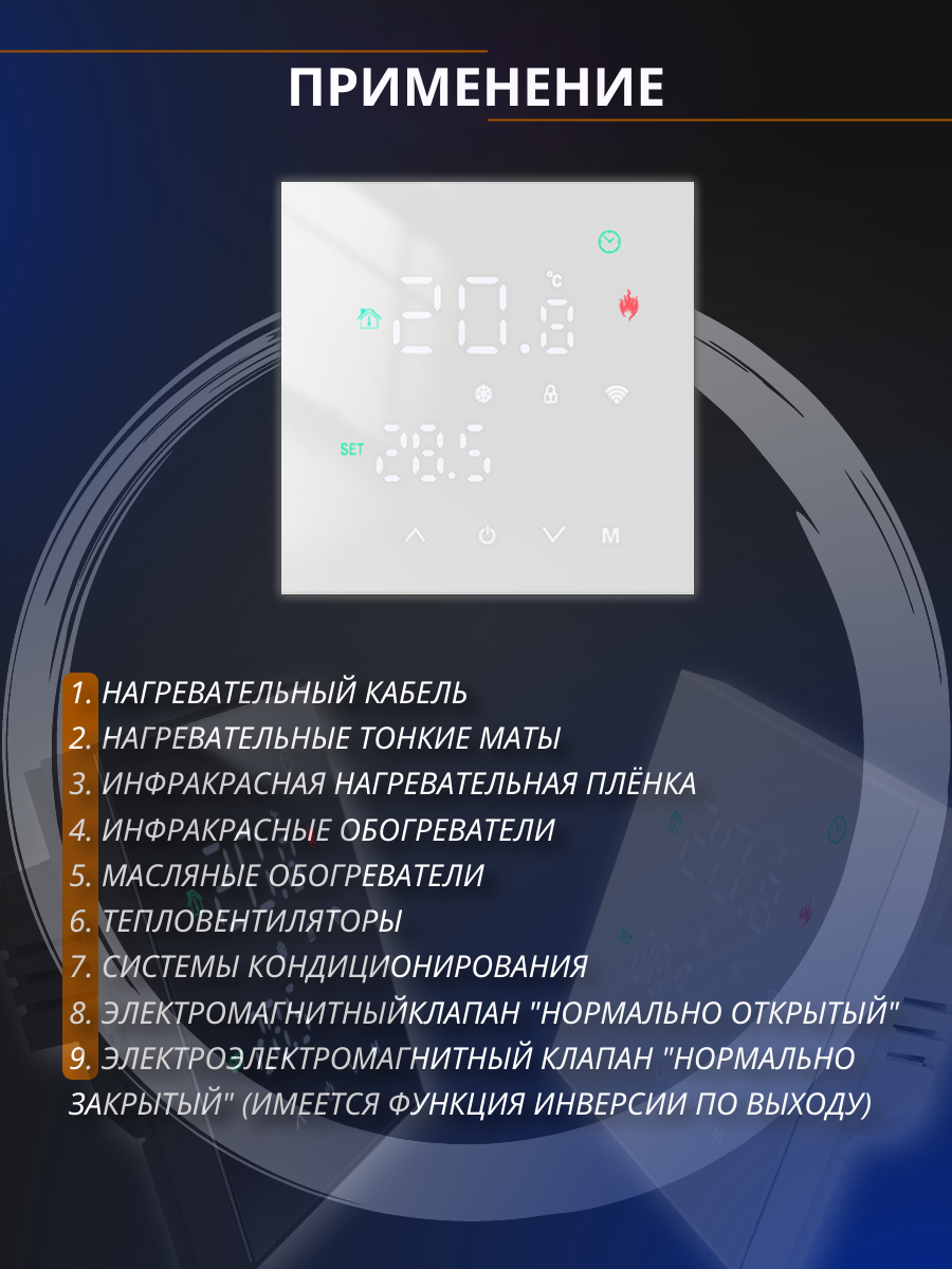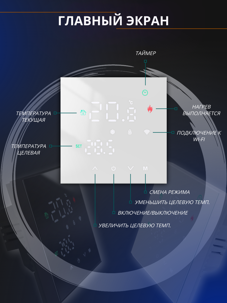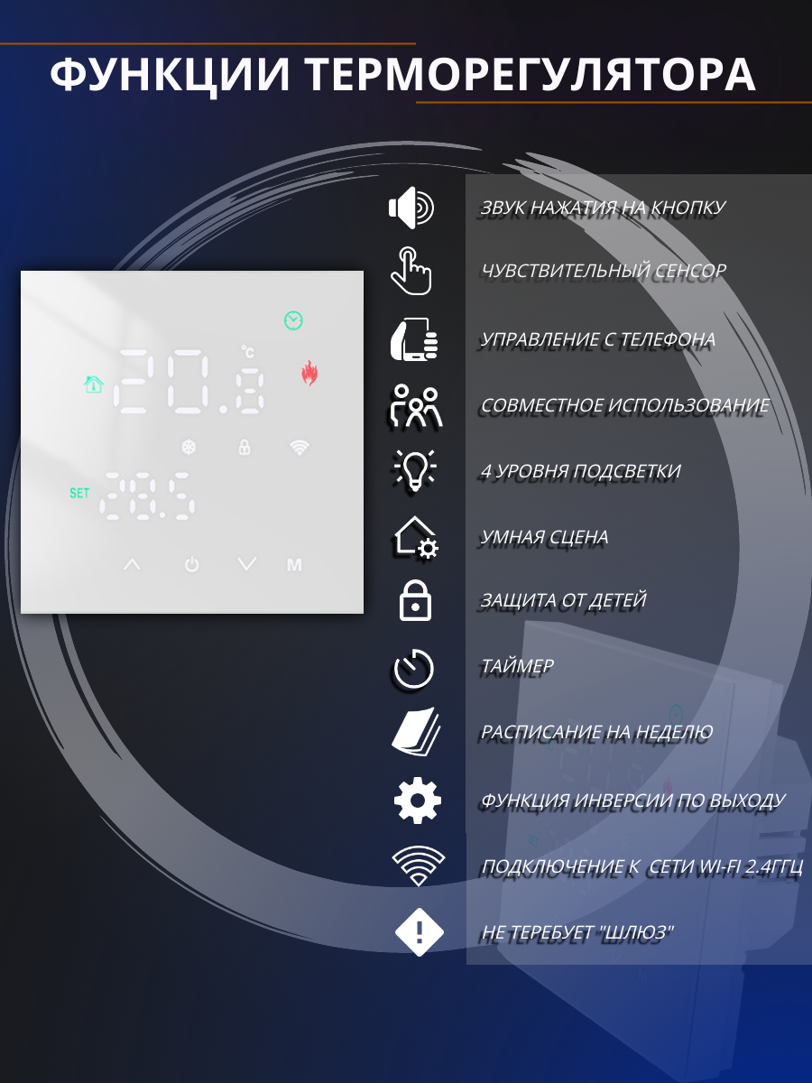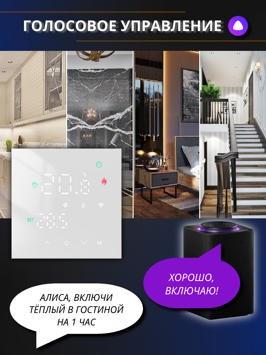Терморегулятора (термостата) для теплого пола электрический с сенсорным экраном, встроенная wi-fi функция, мобильное приложение Smart Life, работает с умным голосовым помощником – Алисой