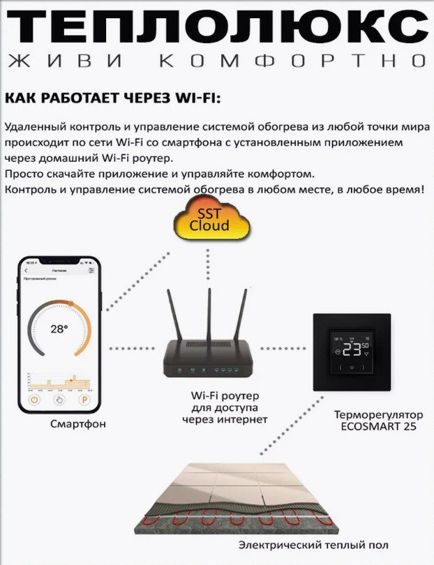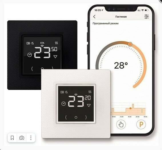 | Плюсы: | Управление с телефона, подходит к теплым полам другого производителя |