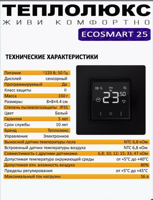 СохранитьТерморегулятор EcoSmart 25 черный интересное: