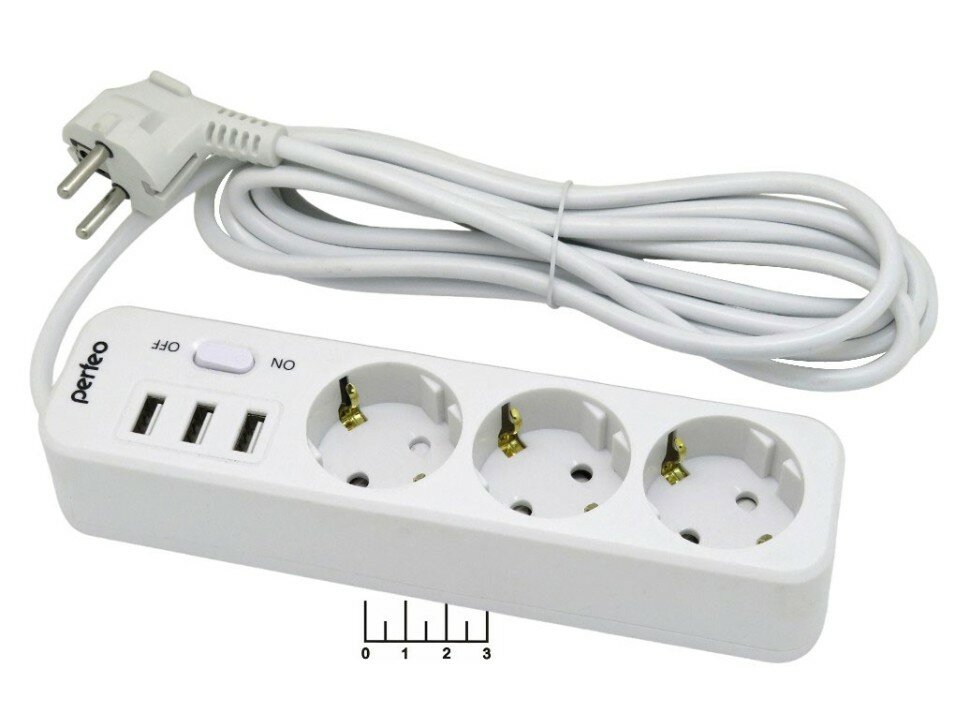 Сетевой фильтр 3/2м + 3USB с выключателем (max-10A) Perfeo PF_C3906