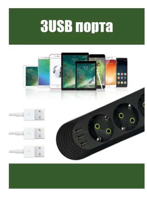 Удлинитель сетевой фильтр 2 метров 4 розетки + 3 USB черный EU интересное: