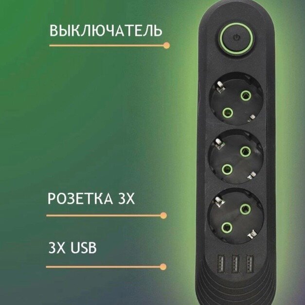 Сетевой фильтр удлинитель 3 розетки, 3 USB, 3 метра интересное: