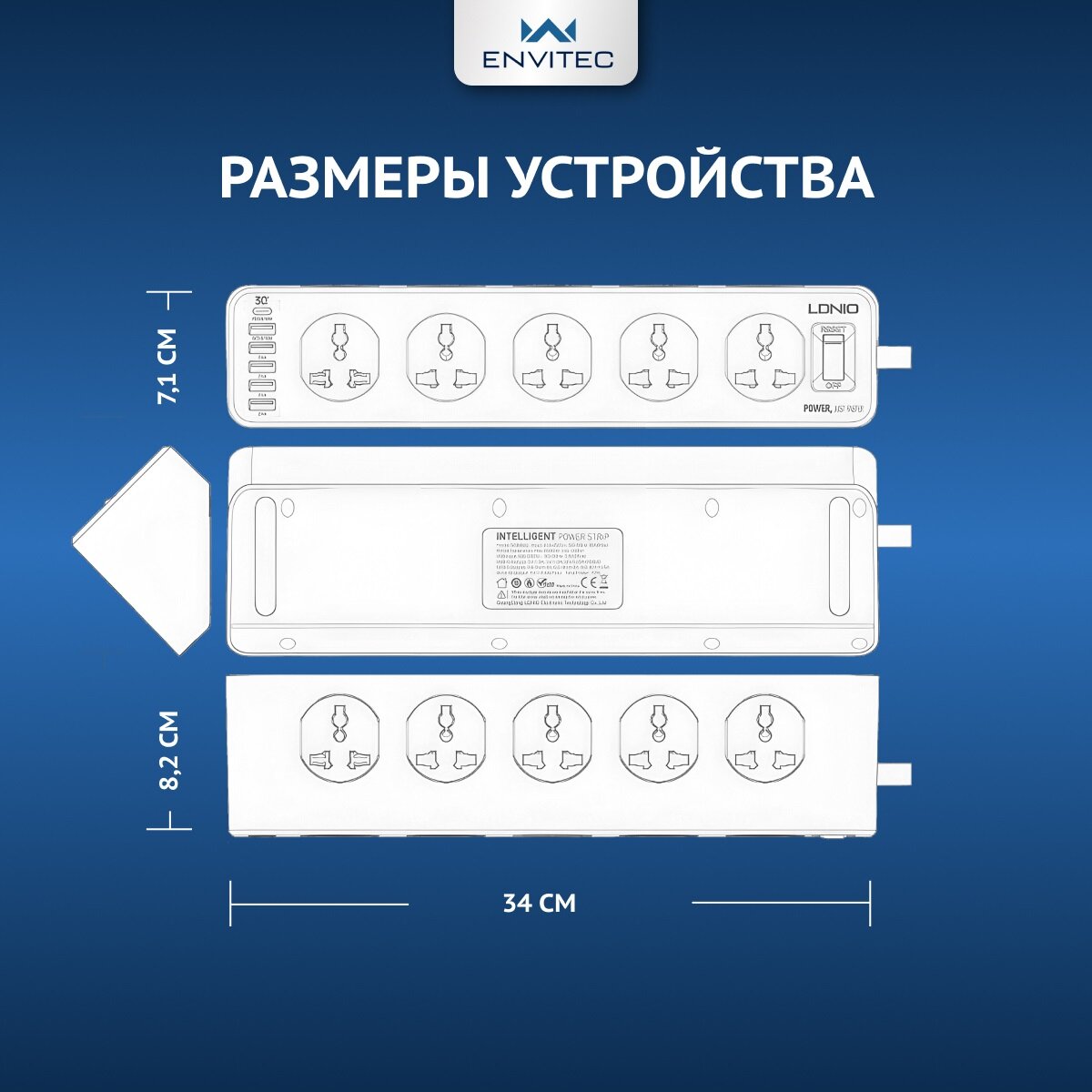 Ниже Вы можете прочитать отзывы на Сетевой фильтр удлинитель Envitec с USB портами (10 розеток + 5 USB A + 1 USB Type C), ознакомится с подробными характеристиками, посмотреть интересные обзоры и фотографии на Сетевой фильтр удлинитель Envitec с USB портами (10 розеток + 5 USB A + 1 USB Type C).