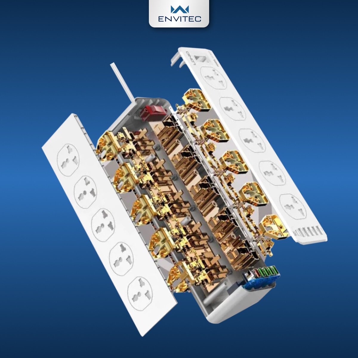Купить Сетевой фильтр удлинитель Envitec с USB портами (10 розеток + 5 USB A + 1 USB Type C)
