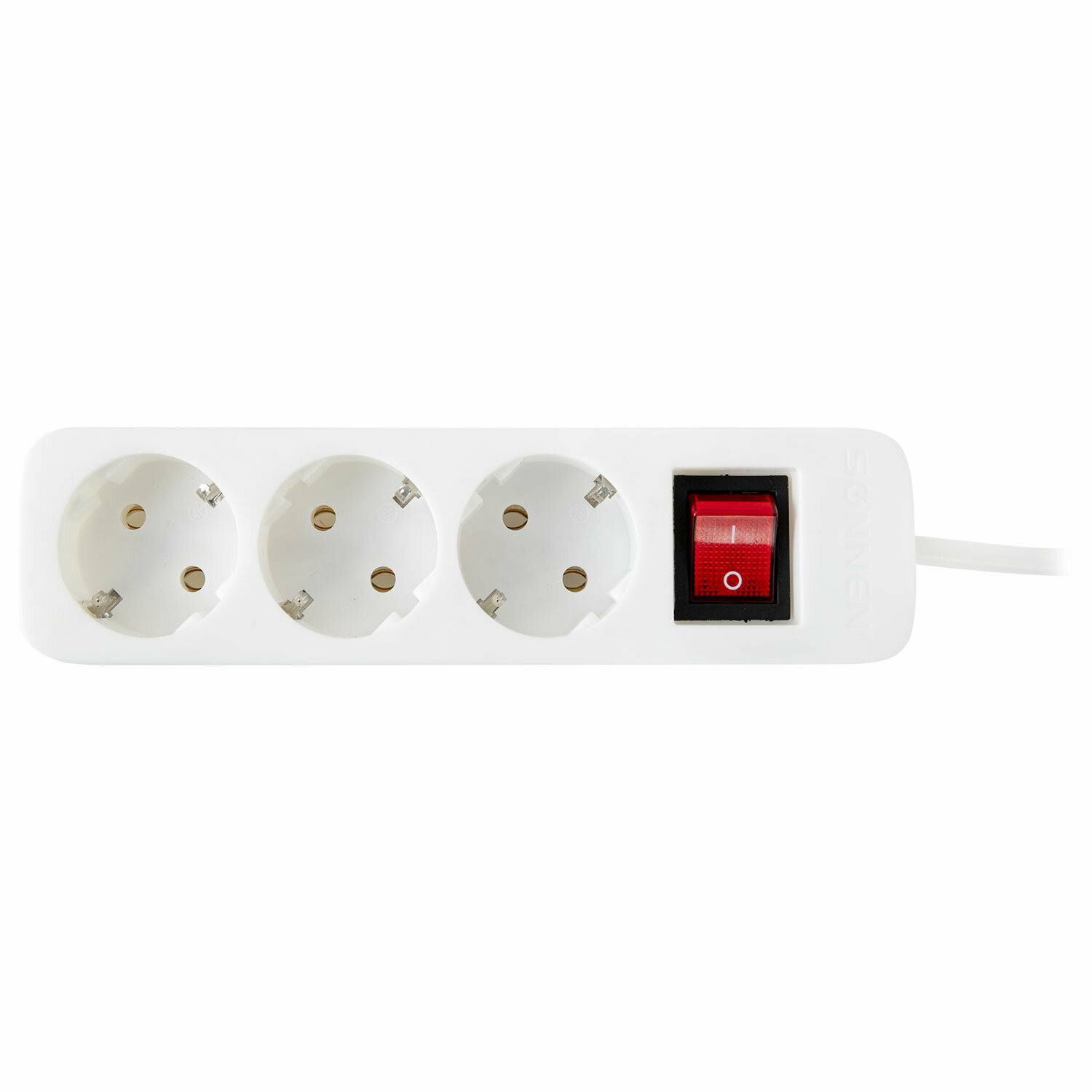 Удлинитель-переноска сетевой Sonnen Psw-303, 3 розетки c заземлением, выключатель 10 А, 3 м, белый, 513660