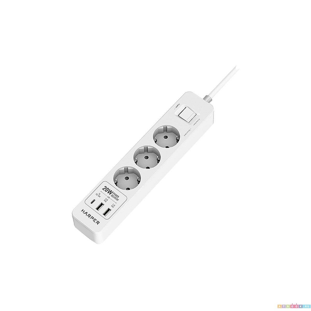Сетевой фильтр с USB зарядкой HARPER UCH-440 PD3.0 / 3 розетки / 3 USB-порта, белый