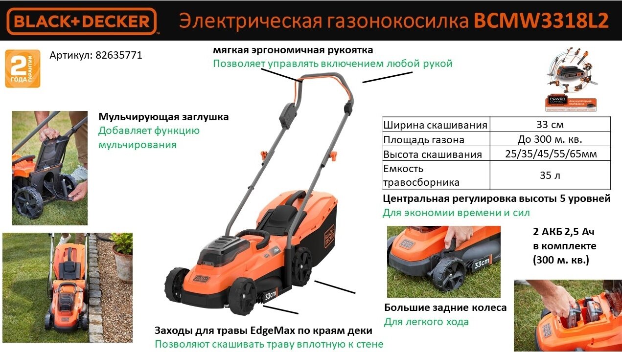 Газонокосилка аккумуляторная Black Decker 36 В 33 см АКБ (2 шт) и ЗУ в комплекте интересное: