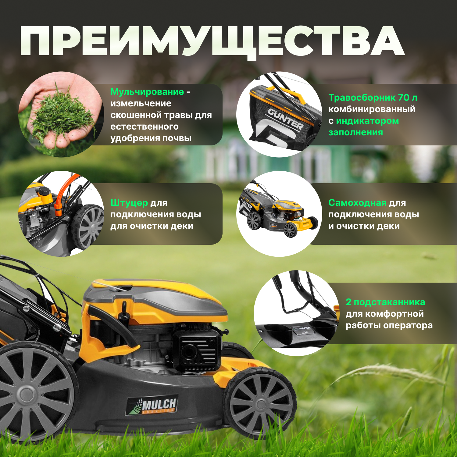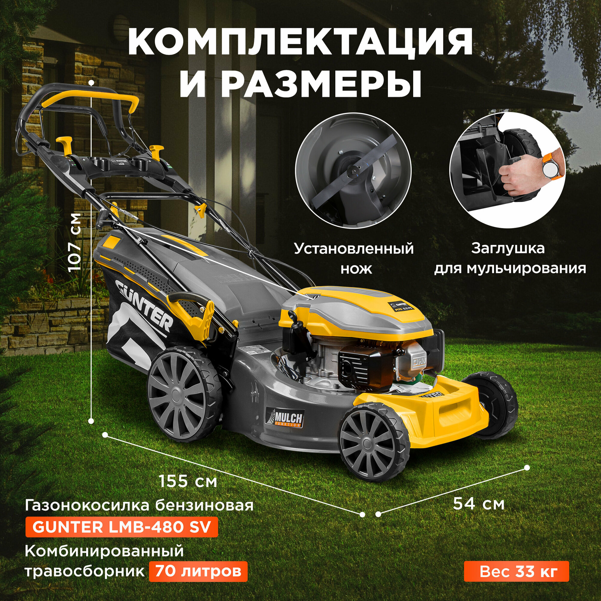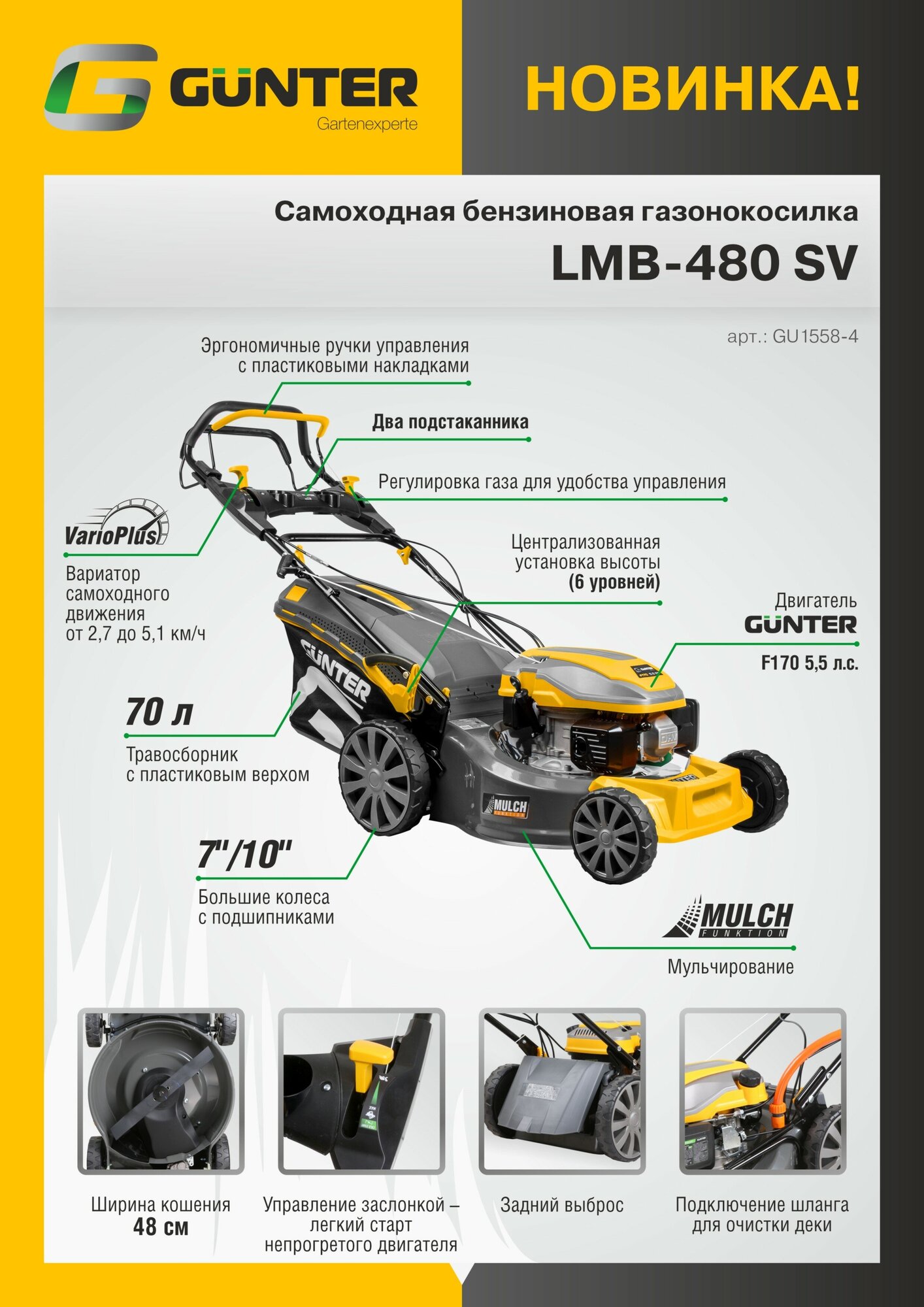 Газонокосилка бензиновая Gunter LMB-480 SV (GU1558-4) интересное: