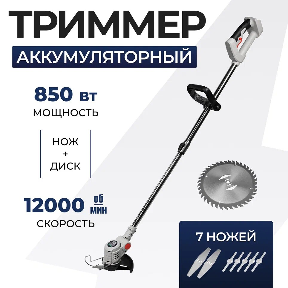 Триммер для травы аккумуляторный садовый ручной мощный триммер для газона. 2 аккумулятора. 8 насадок