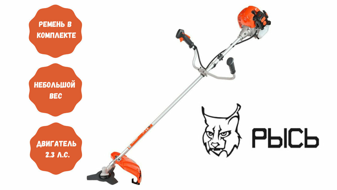 | Подробная комплектация | Триммер бензиновый Рысь БТР-43 ПРОМО, 2.3 л.с., 23 см |