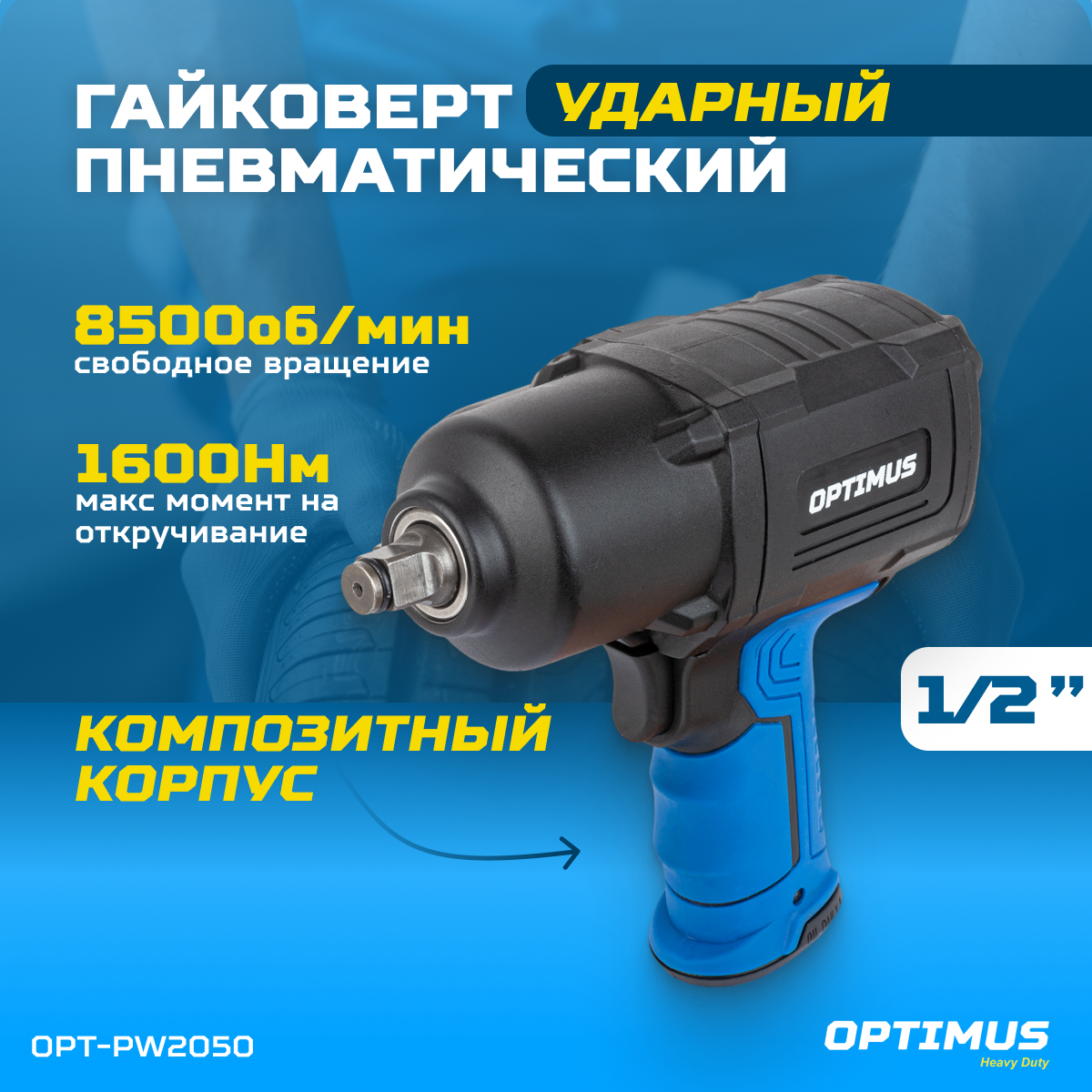 Гайковерт OPTIMUS пневматический ударный 1/2" 1600 Нм OPT-PW2050 интересное: