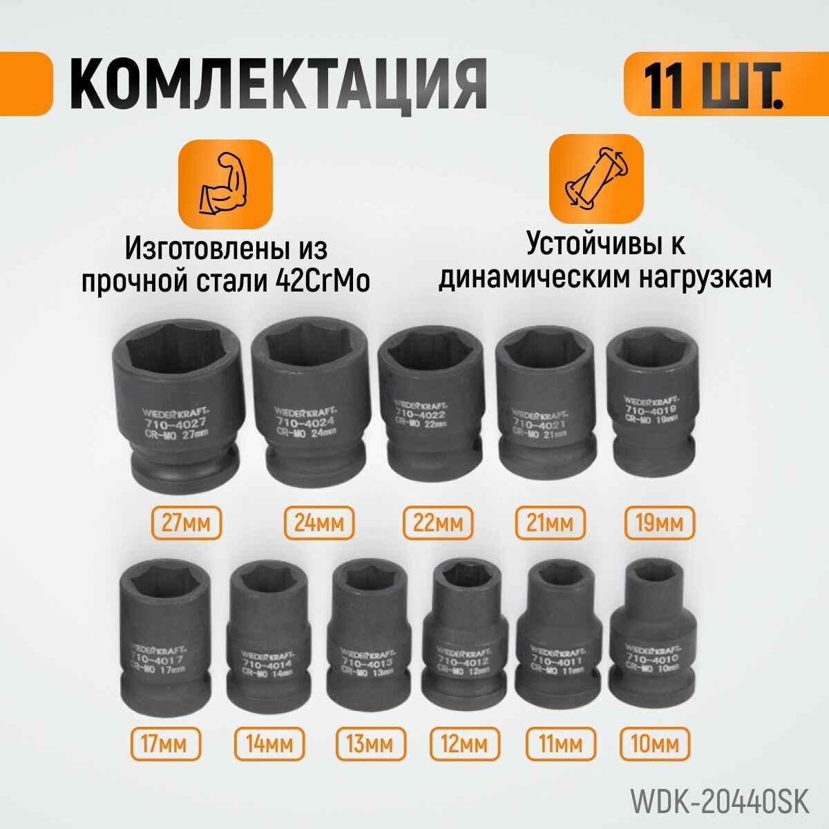 Гайковерт пневматический ударный WIEDERKRAFT 1/2", 1360 Нм WDK-20440 с набором ударных головок WDK-710 интересное: