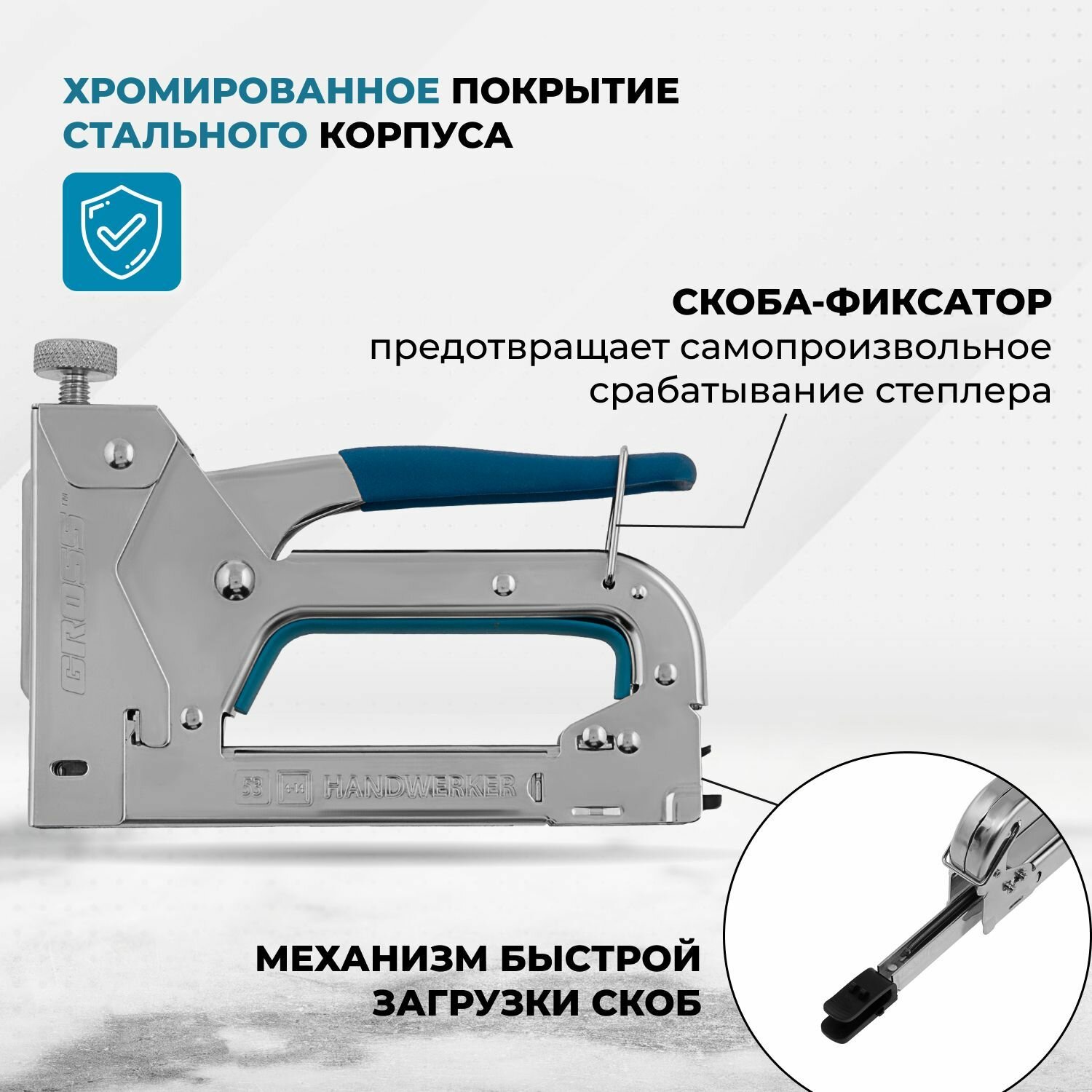 Степлер Мебельный Регулируемый (Handwerker), Стальной Корпус, Тип Скобы 53, 4-14 Мм Gross 41000 GROSS41000