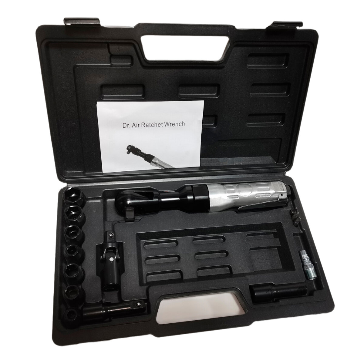 | Комплектация | 1/2 "" головки 9,10,11,13,14,17,19 мм: 7 шт. 1/2 удлинитель: 1 шт. 1/2 универсальный шарнир: 1 шт. 1/2 держатель для бит: 1 шт. Биты Ph2,3: 2 шт. Бита SL5.5: 1 шт. Ниппель: 1 шт. Емкость для масла для пневматического инструмента: 1 шт. Пластиковый кейс: 1 шт. |