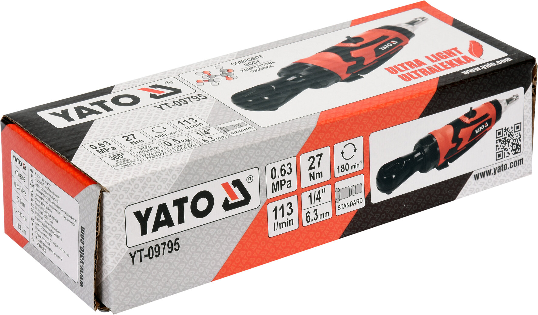Купить YATO Пневмотрещотка 1/4" 27 Nm 0,63 MPa 113 I/min YT-09795