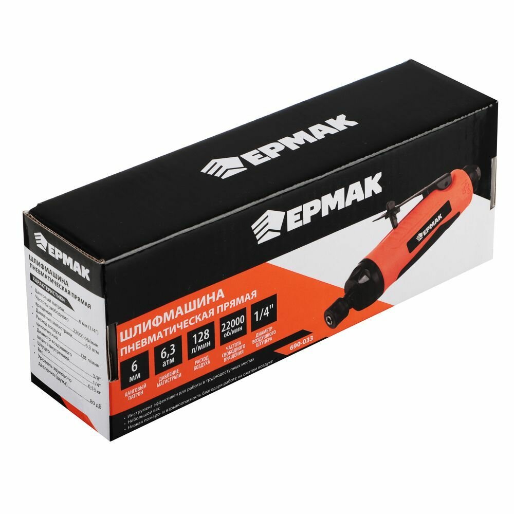 Ермак Шлифмашина пневматическая прямая, цанга 6мм, 128 л/м, интересное: