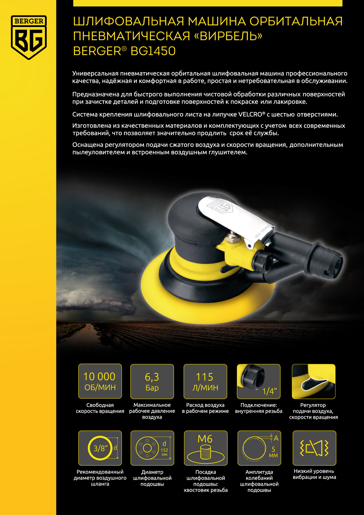 Купить Шлифовальная машина орбитальная Berger BG1450 "вирбель" пневматическая