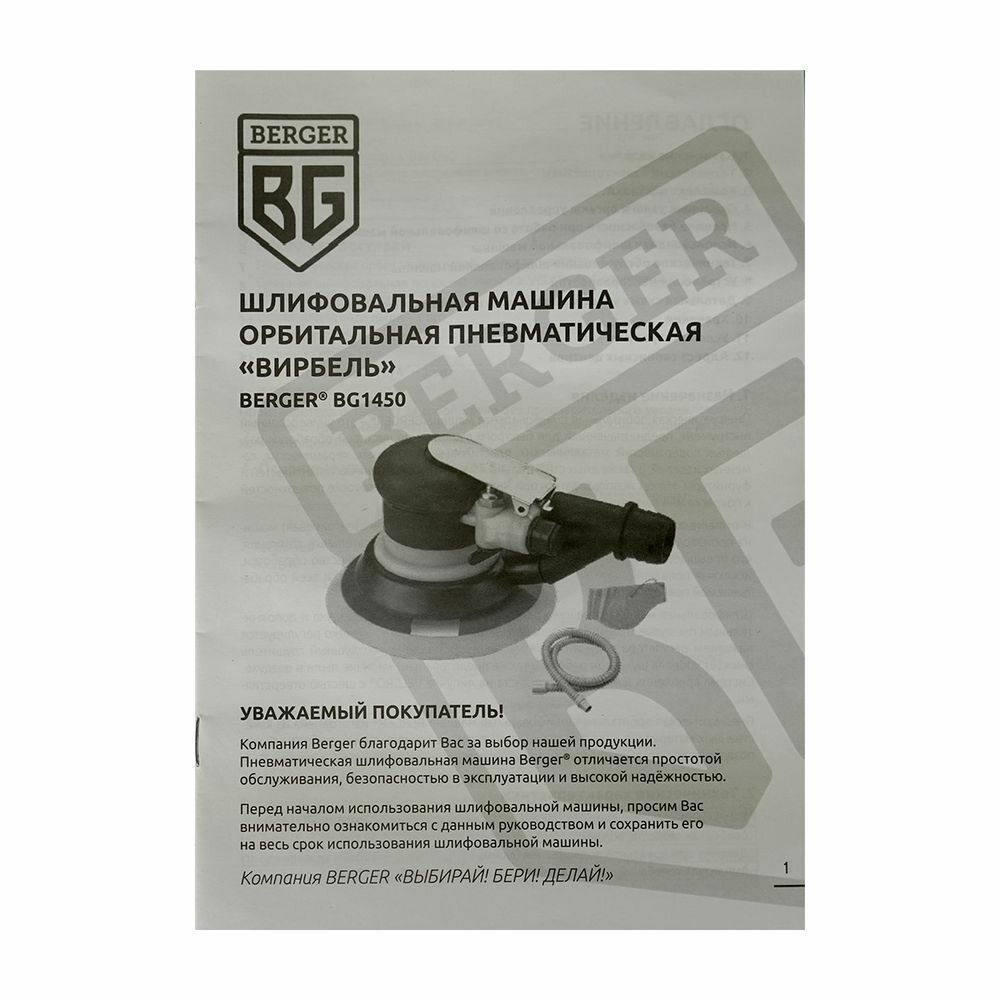 Шлифовальная машина орбитальная Berger BG1450 "вирбель" пневматическая интересное: