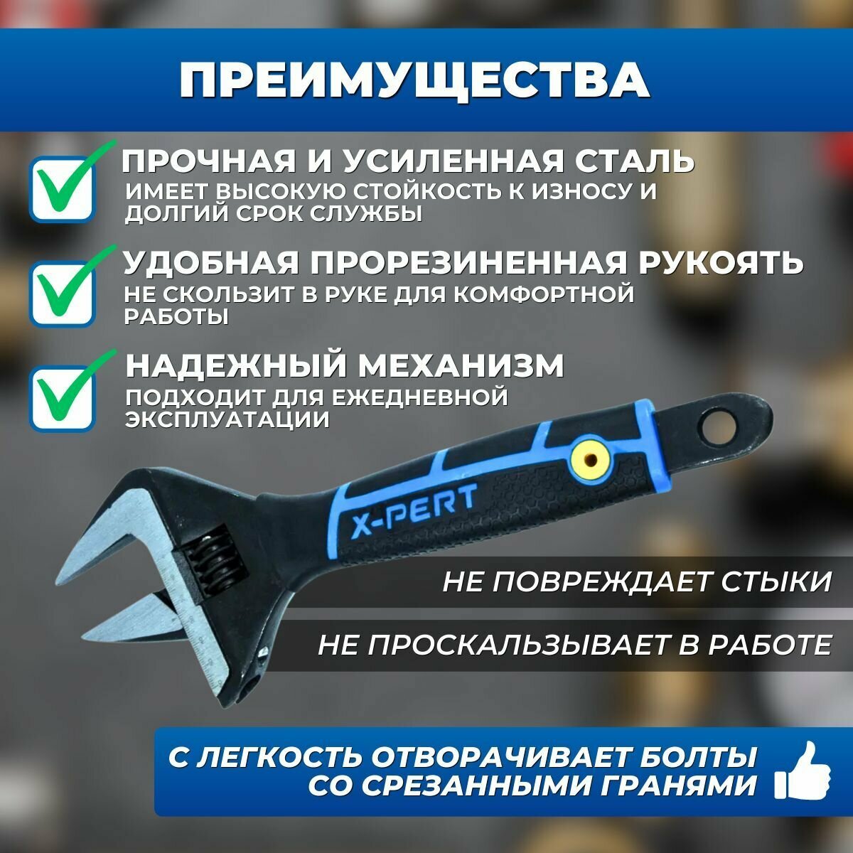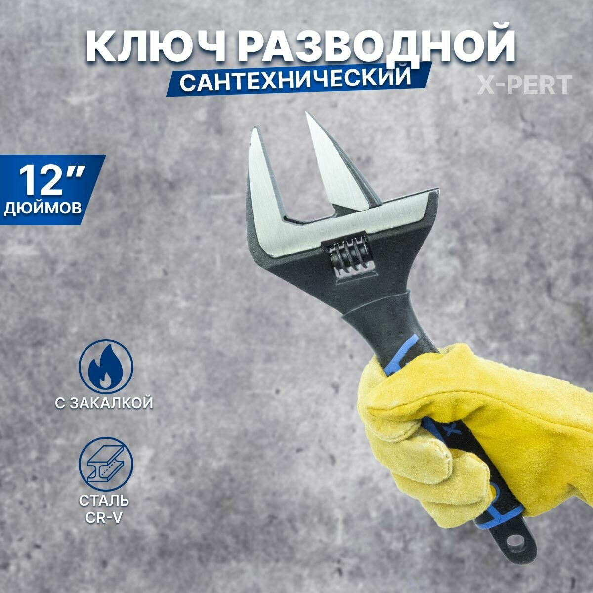 Ключ разводной сантехнический 12" X-PERT PROFI (300x60мм, комбинированная ручка) интересное:
