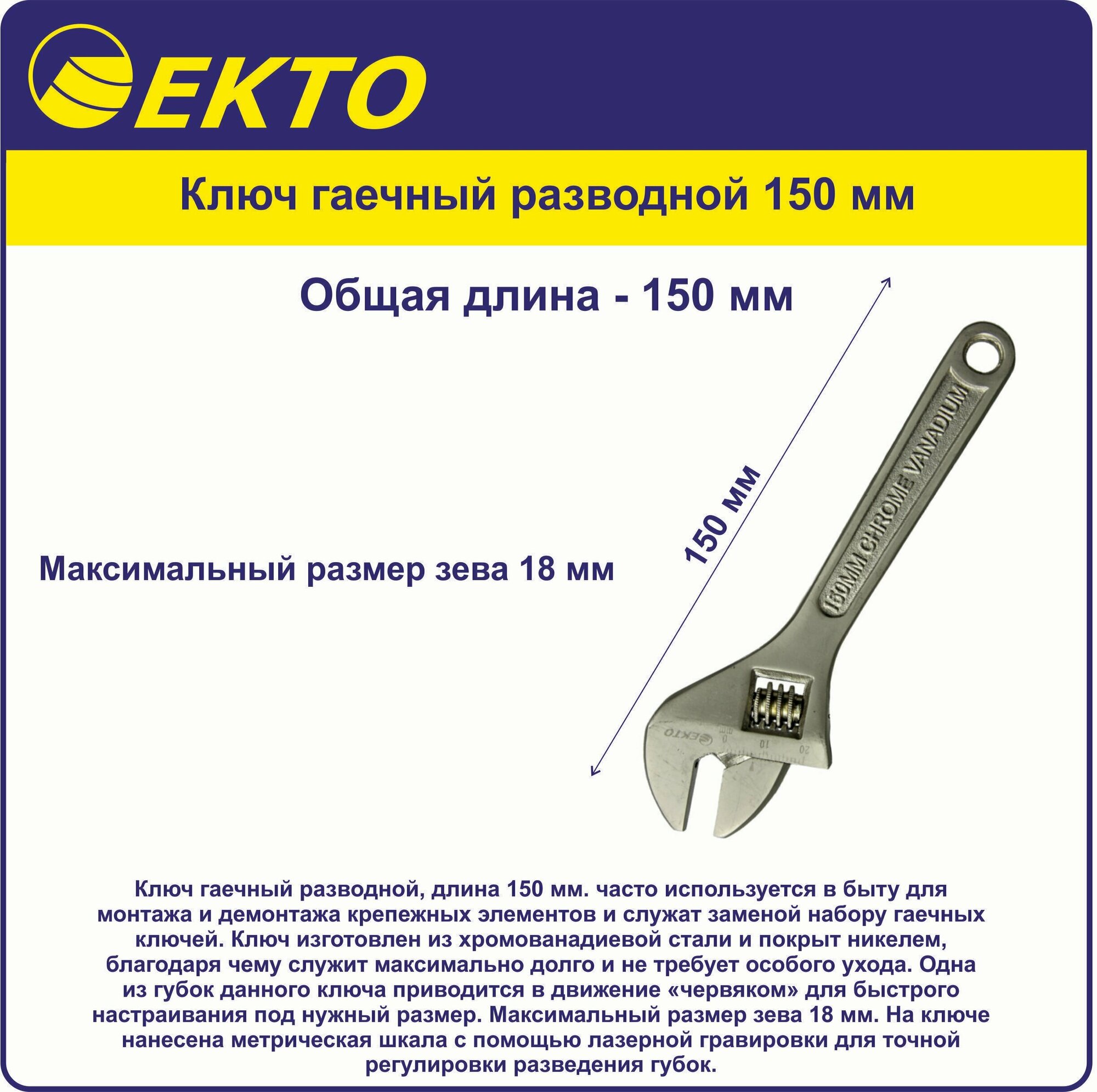 Ключ гаечный разводной 150 мм EKTO Хромванадиевая сталь Покрытие-никель интересное: