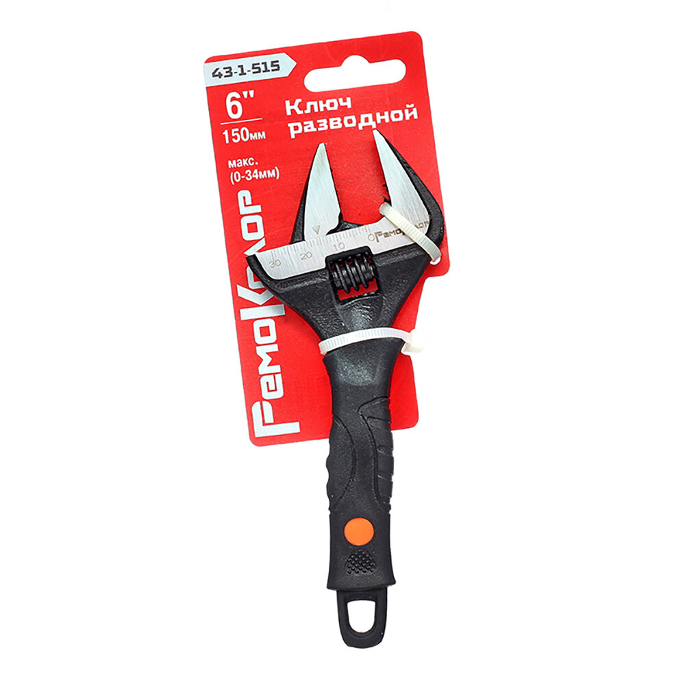 Купить Ключ разводной Ремоколор двухкомпонентная рукоятка, тонкие губки, 150мм (макс 0-34мм), 43-1-515