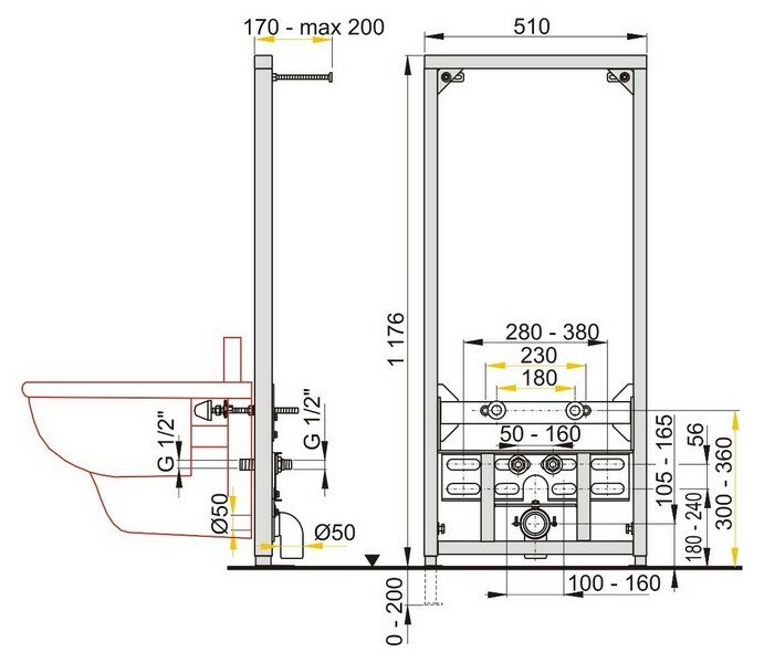 Vincea Инсталляция для унитаза Vincea VIS-601, 500x1112