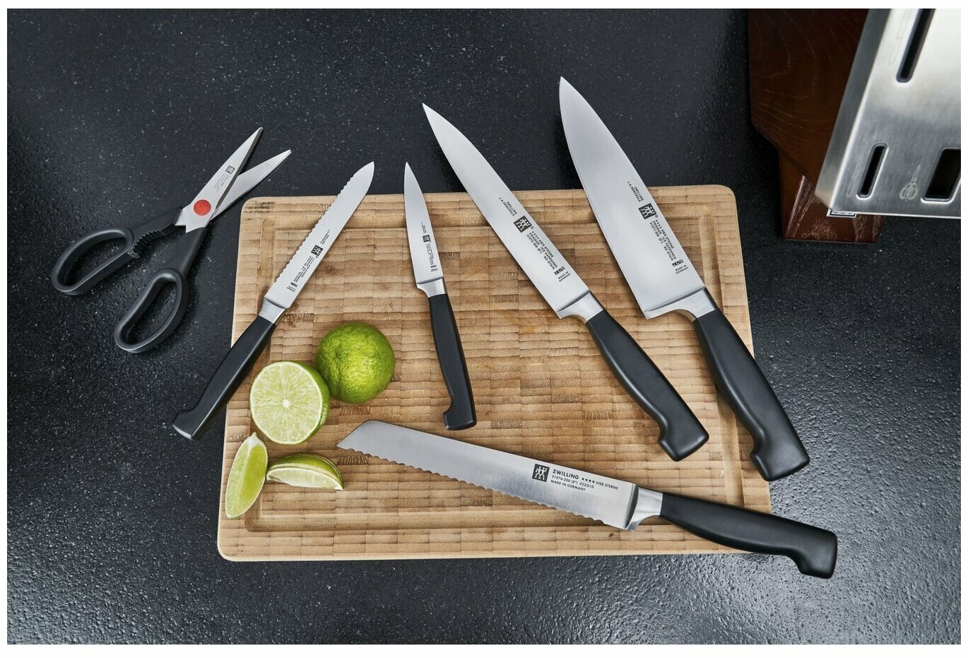 Набор Zwilling J. A. Henckels Four Star 35145-000-0, 5 ножей и ножницы с подставкой