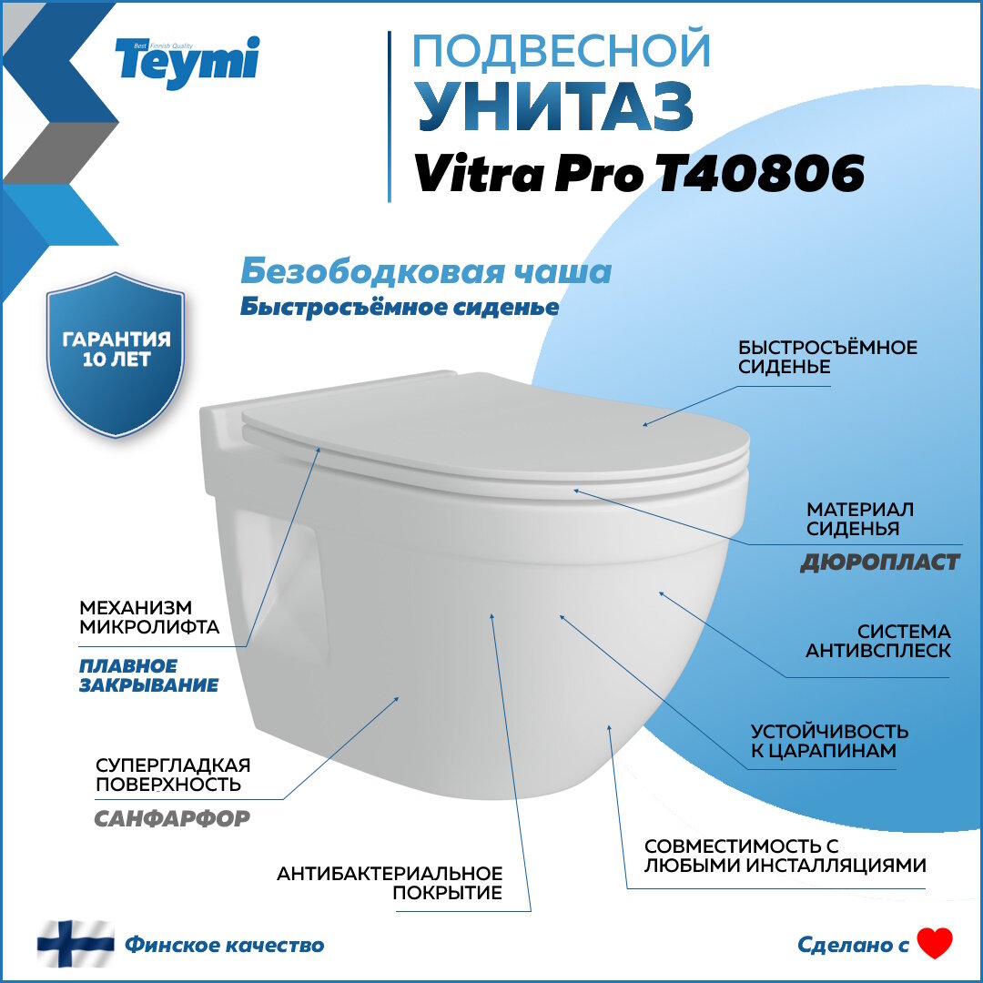 Комплект Teymi "Готовое решение": Инсталляция Aina 50 + клавиша смыва Helmi белая + унитаз Vitra Pro F00682 интересное: