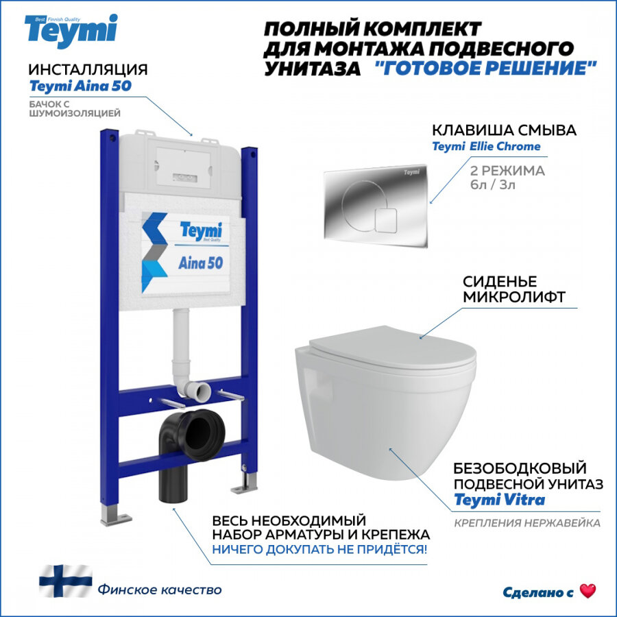 СохранитьКомплект Teymi "Готовое решение": Инсталляция Aina 50 + клавиша смыва Ellie хром + унитаз Vitra F00701 интересное: