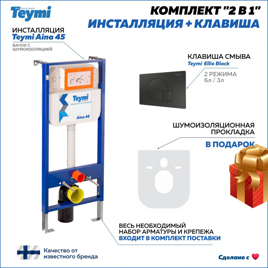 Купить Комплект Teymi 2 в 1: Инсталляция Aina 45 + кнопка Ellie черная F01178