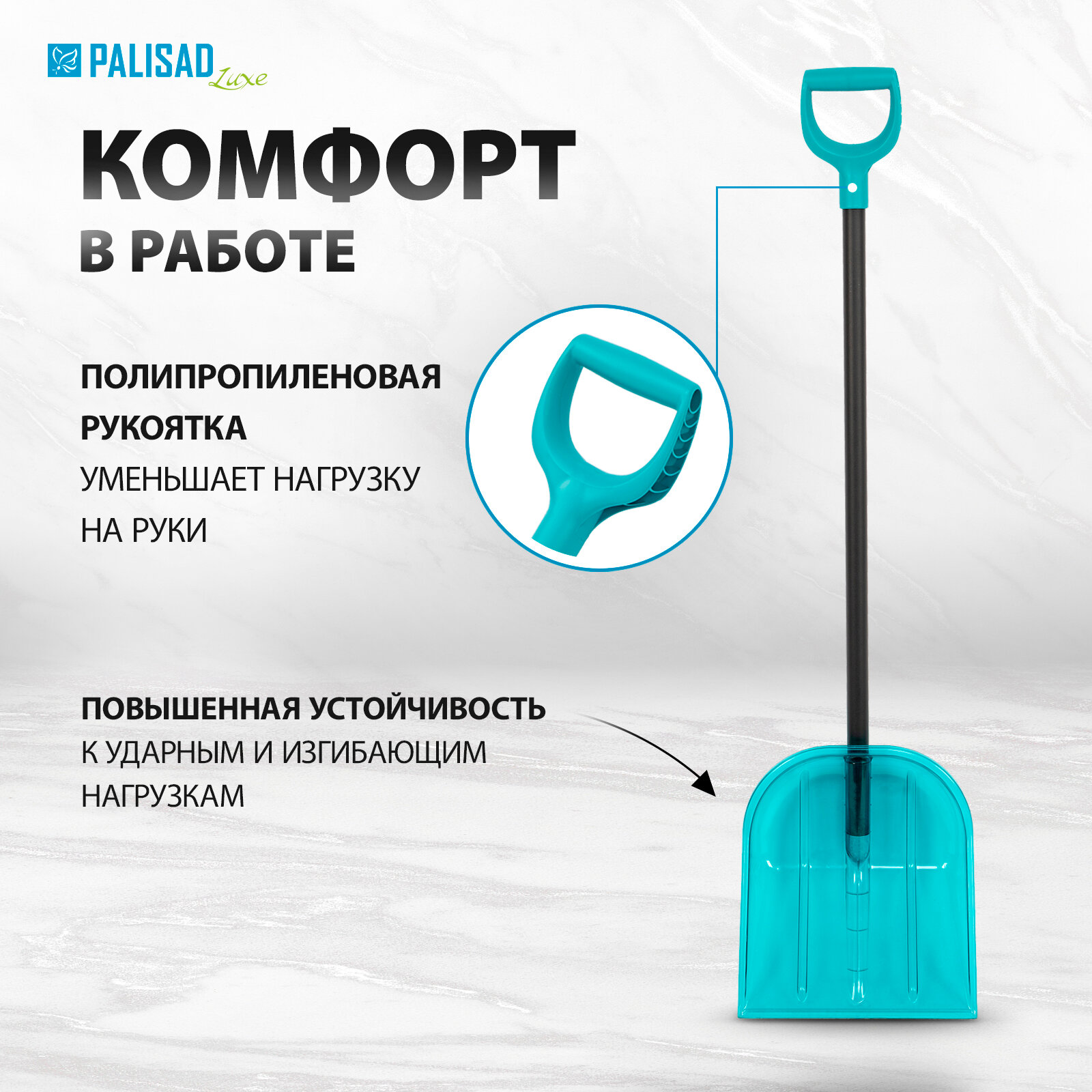Лопата для уборки снега Palisad поликарбонат, 340х385х1340 мм, алюминиевый черенок 61691 интересное: