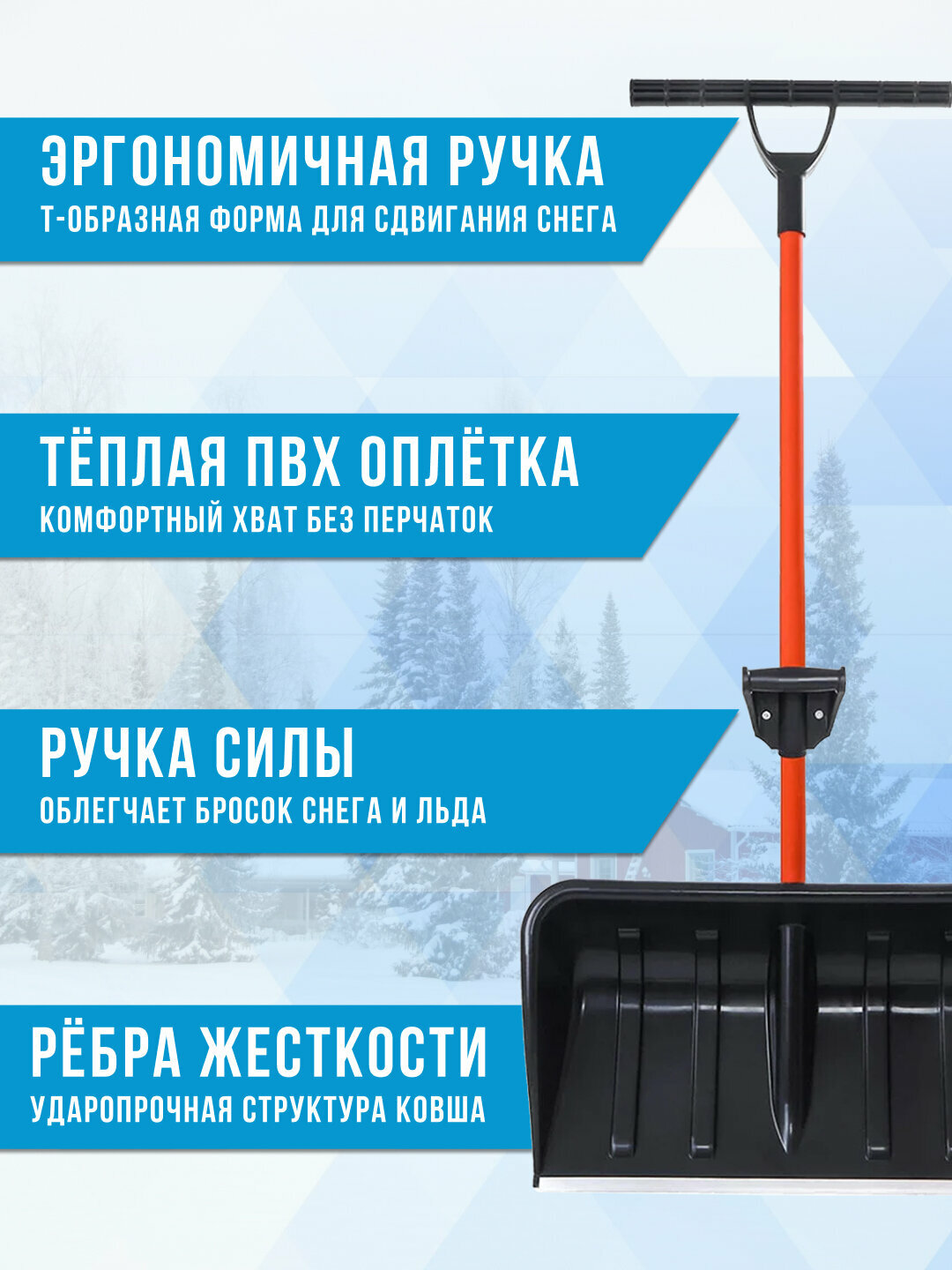 Лопата-скрепер для снега Стандарт Ратник с ручкой интересное: