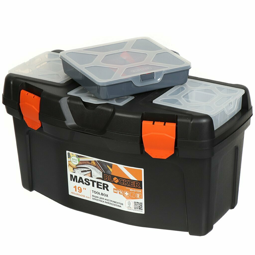Купить Ящик для инструментов, 19 '', 26х45х25.8 см, пластик, Master, Blocker + органайзер, BR6673ЧРОР