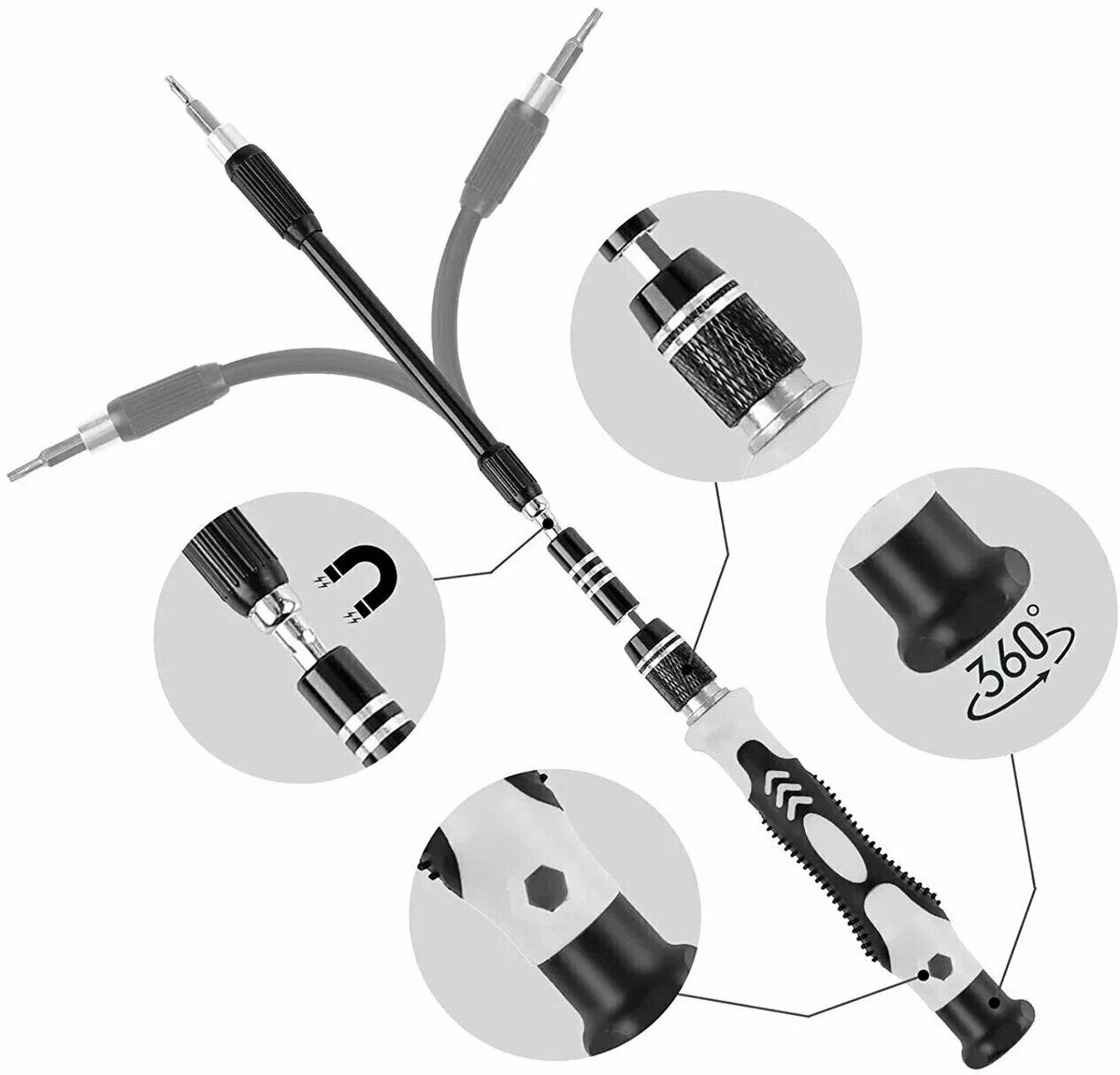 Магнитные отвёртки для точных работ, Набор 24 в 1 с битами, Отвертки набор для точных работ с набором сменных бит