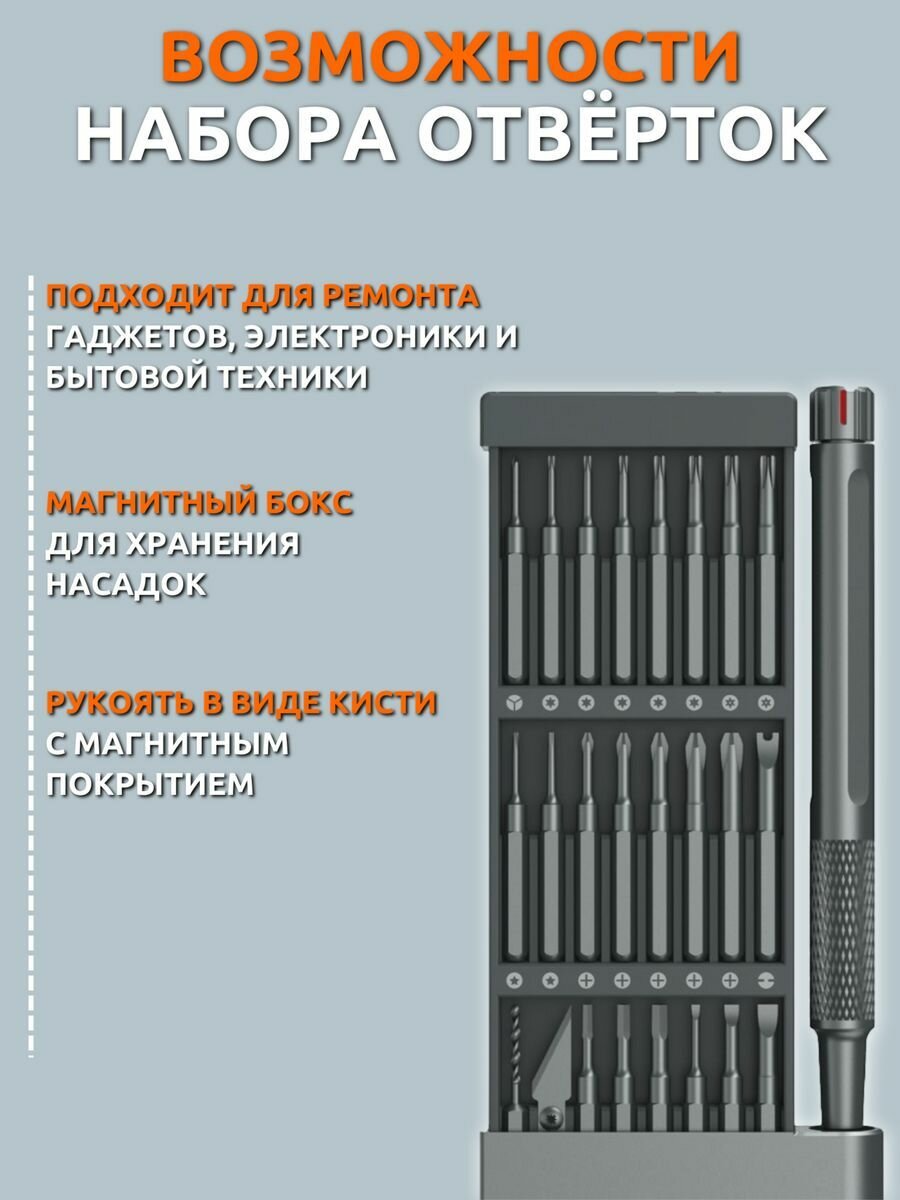 Магнитные отвёртки для точных работ, Набор 24 в 1 с битами, Отвертки набор для точных работ с набором сменных бит