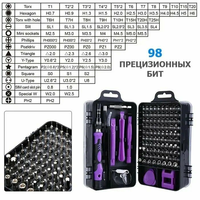 СохранитьНабор отверток и бит 115 в 1, многофункциональный инструмент для точных работ, фиолетовый цвет интересное: