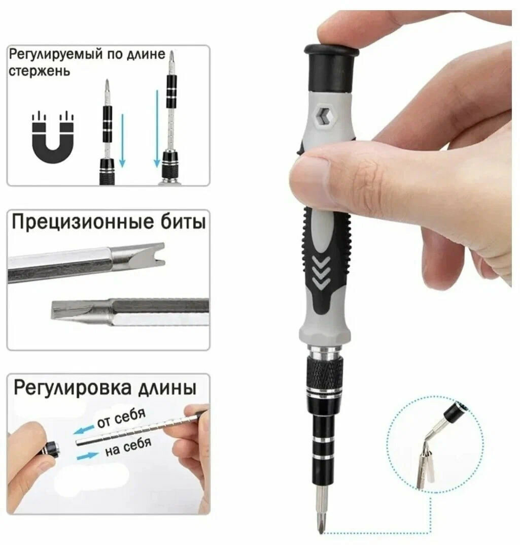 Магнитные отвёртки для точных работ, Набор 24 в 1 с битами, Отвертки набор для точных работ с набором сменных бит