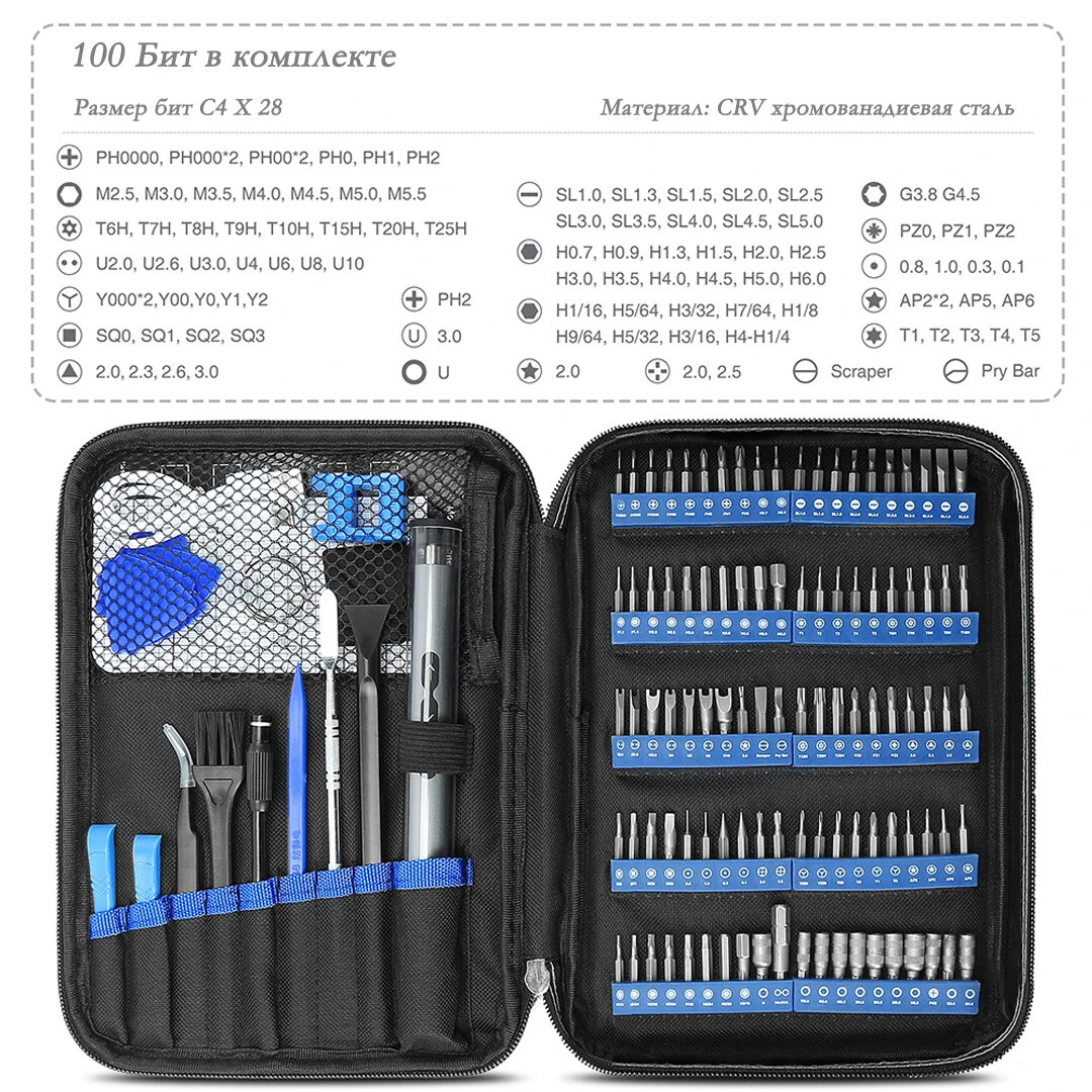 Электрическая реверсивная отвёртка Franzhoff с набором прецизионных бит (120 предметов) и инструмента, для ремонта электроники и не только, в удобном кейсе - сумке с ручкой