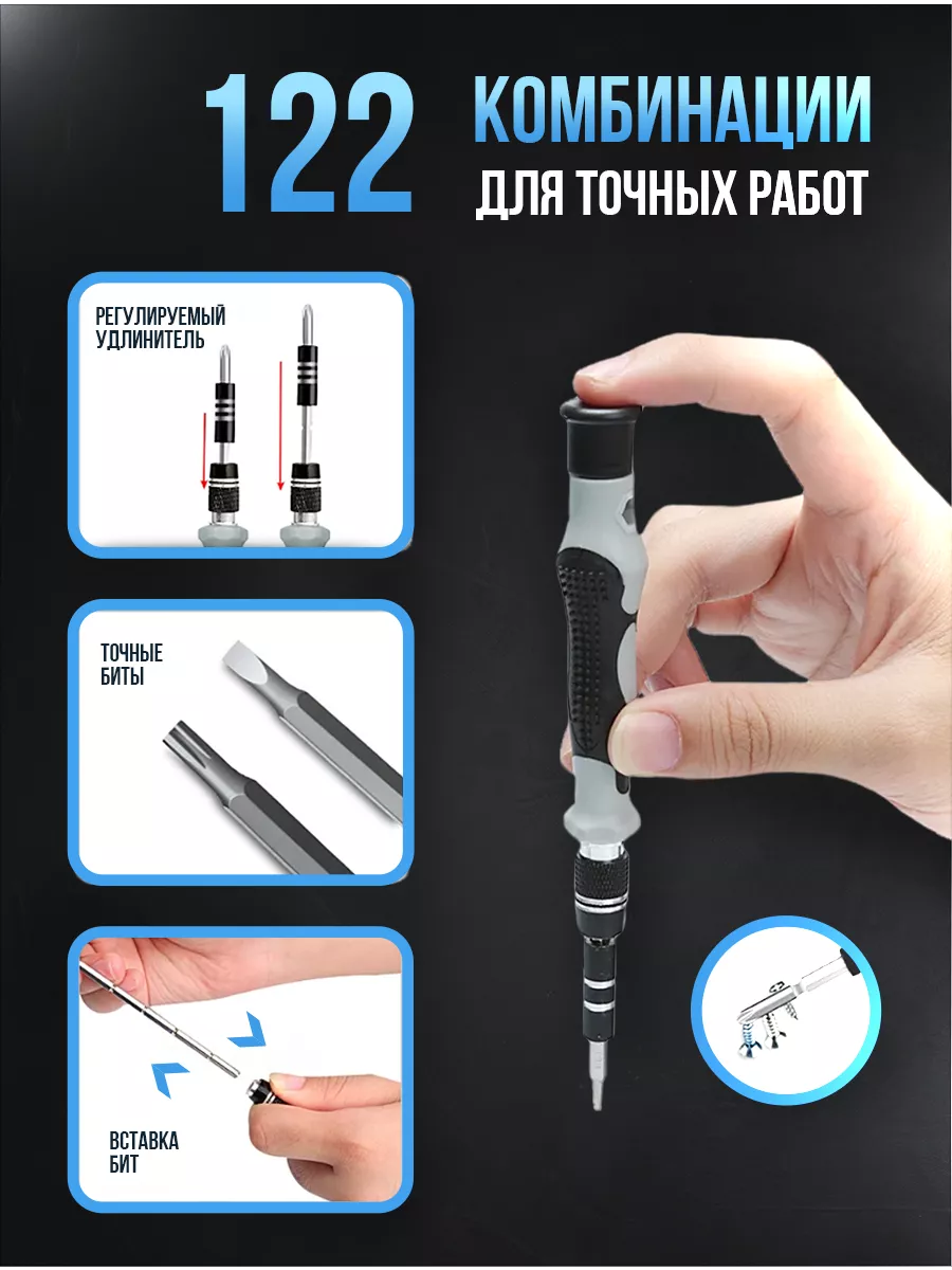 Набор отверток / бит для точных работ в кейсе 115в1/Профессиональный набор отвертка с магнитными битами для ремонта интересное: