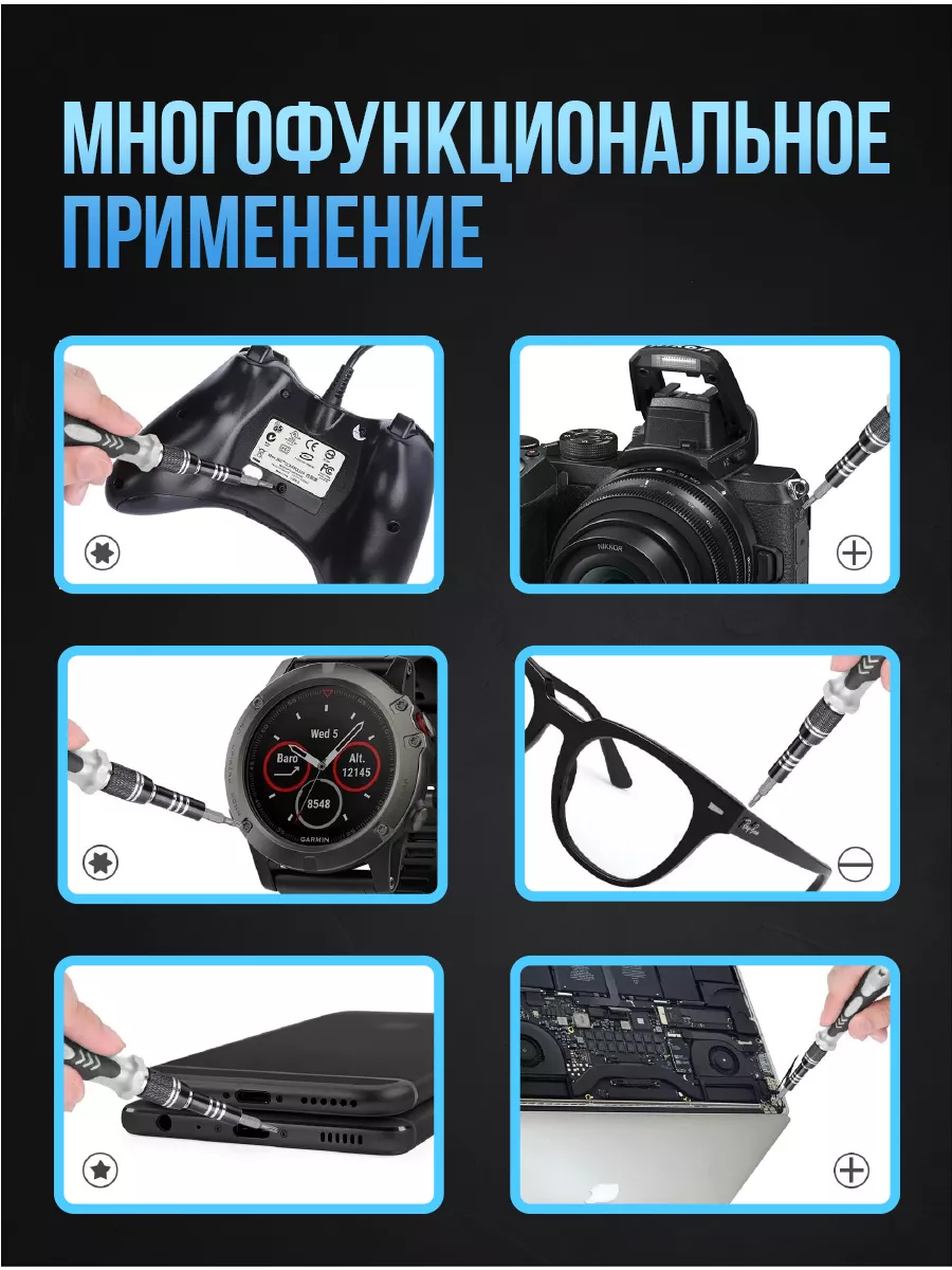 | Тип наконечника | Pentalobe / Torx / spanner (U) / tri-point (Y) / крестообразный / прямой / шестиугольный (H) |