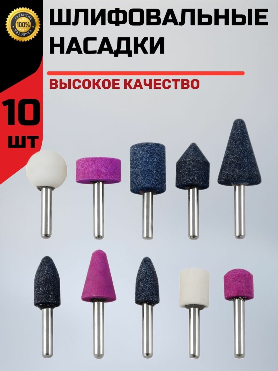Набор абразивных камней для шлифовки и фрезерования - 10 штук. Набор шарошек.