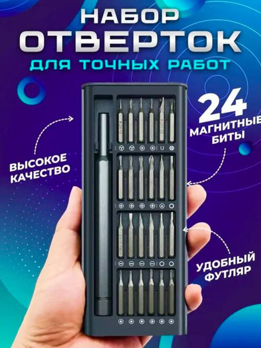 Магнитные отвёртки для точных работ, Набор 24 в 1 с битами, Отвертки набор для точных работ с набором сменных бит