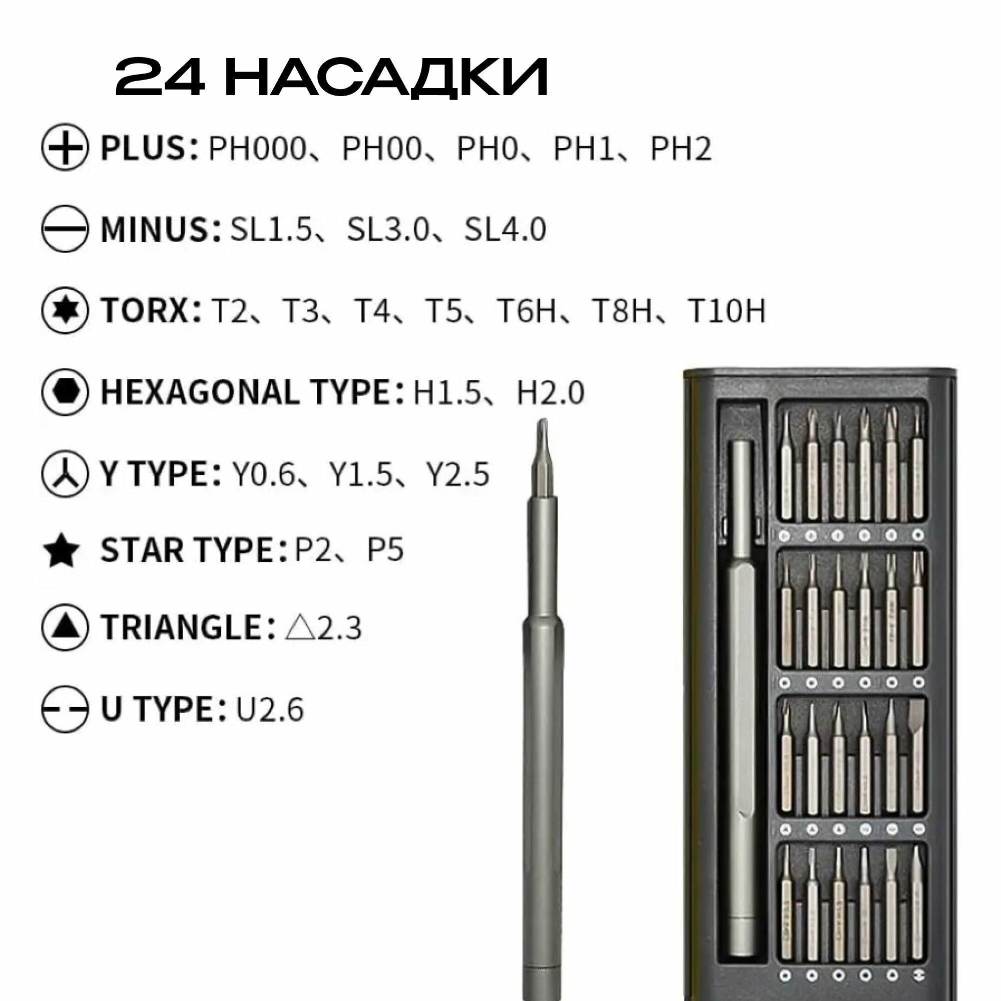 Магнитные отвёртки для точных работ, Набор 24 в 1 с битами, Отвертки набор для точных работ с набором сменных бит