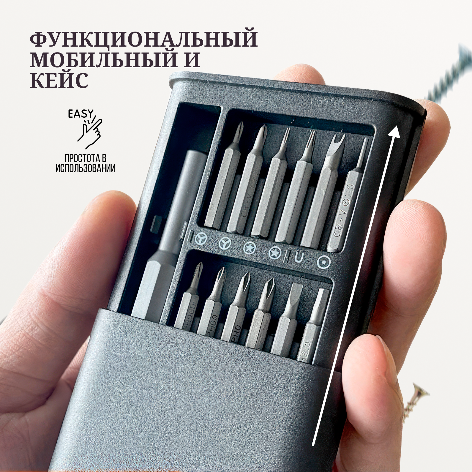 Отвёртка с набором магнитных, хромированных бит 24 в 1, набор для точных работ, магнитный кейс интересное: