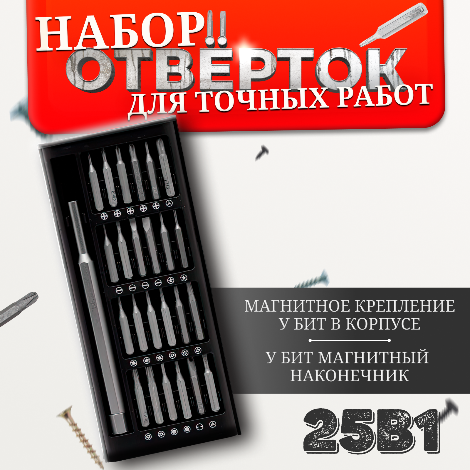 Магнитные отвёртки для точных работ, Набор 24 в 1 с битами, Отвертки набор для точных работ с набором сменных бит